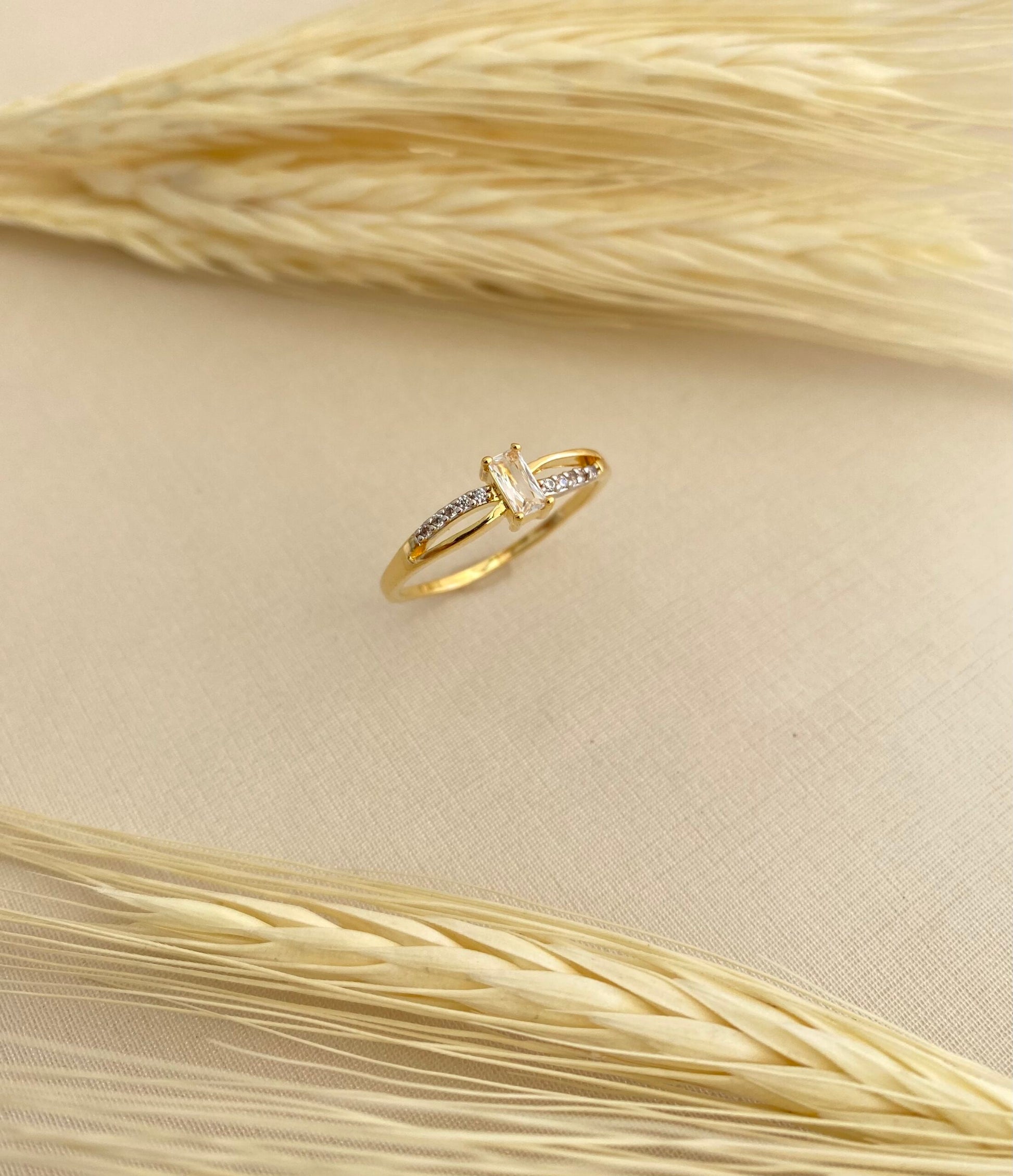 Inspirado na beleza suave do nascer do sol, o Anel Alvorecer é sinônimo de delicadeza e brilho sereno. Com uma pedra central retangular em tom cristalino e cravação lateral de zircônias, ele traz leveza, sofisticação e um toque moderno ao visual.