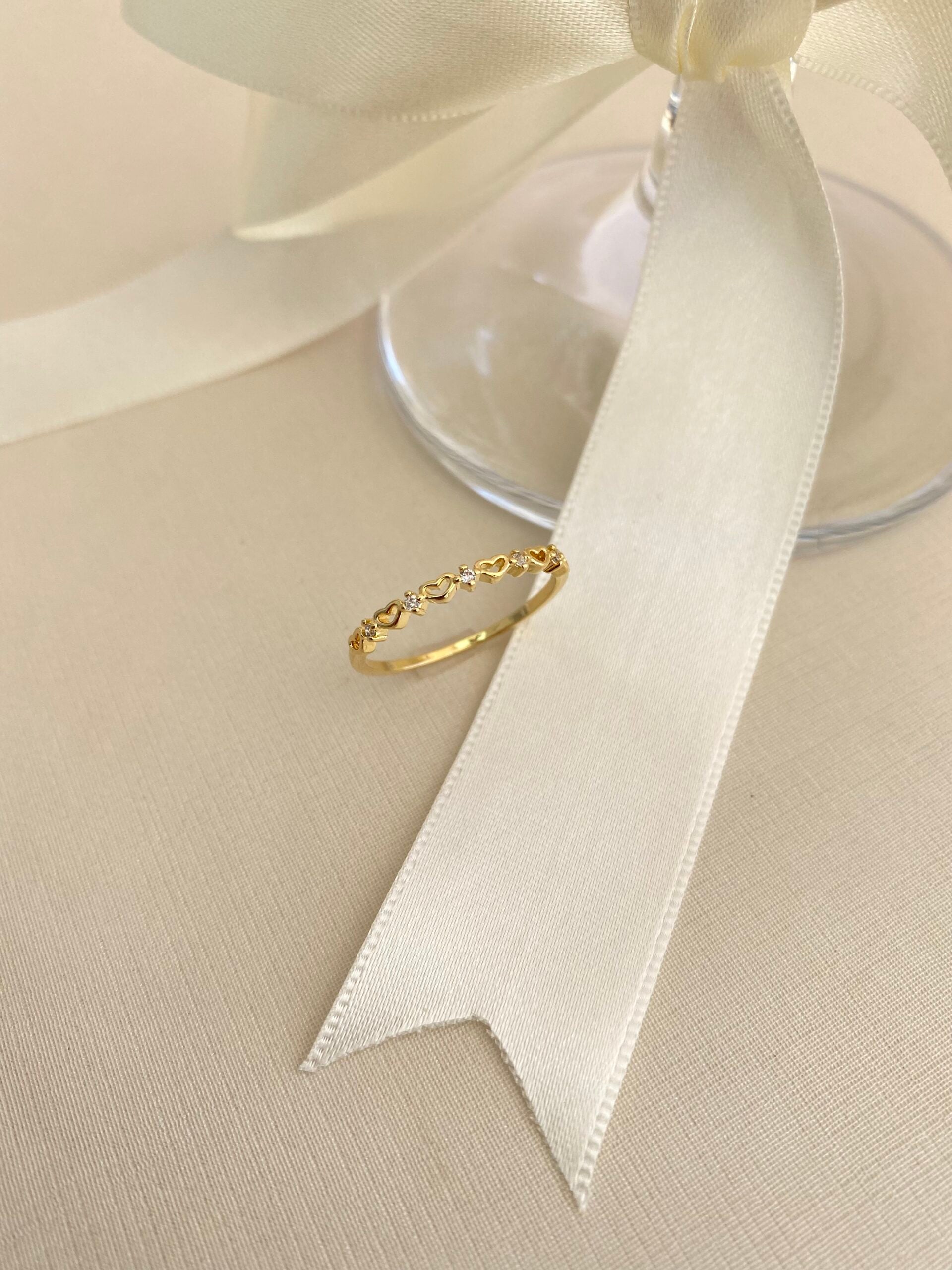 - Design: Aro fino com corações vazados e zircônias intercaladas