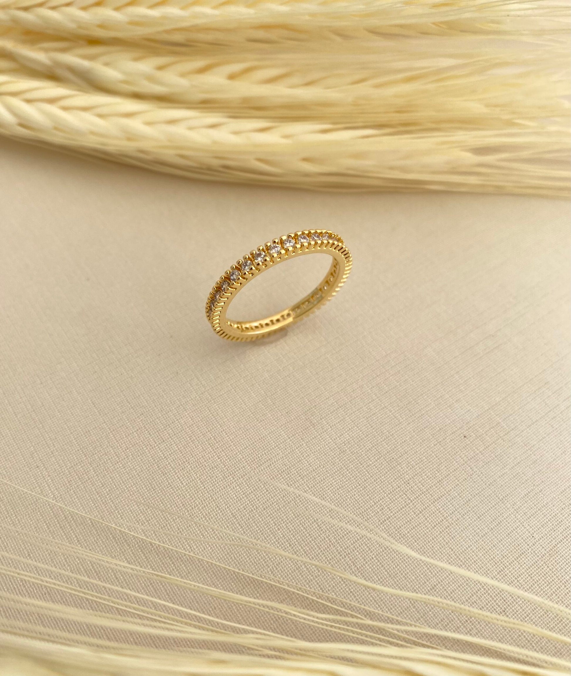 Clássico, versátil e atemporal. O Anel Aparador Requinte Cravejado é a peça perfeita para quem valoriza o brilho discreto e a elegância minimalista. Com micro zircônias delicadamente alinhadas em toda a sua extensão, ele é ideal para ser usado sozinho ou como aparador de outras joias, acrescentando um toque de sofisticação ao mix de anéis.
