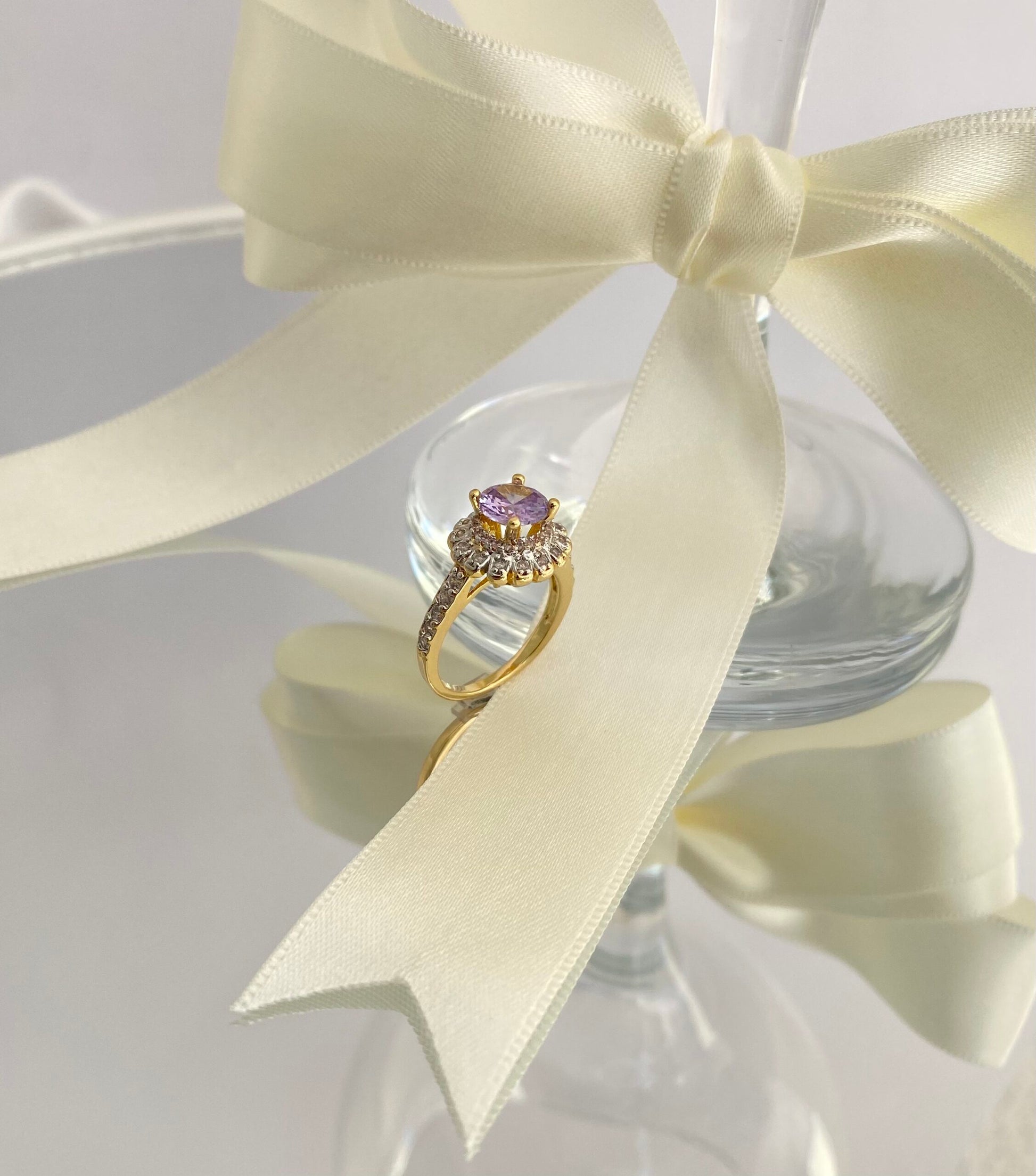 - Cravação: Zircônias baguete ao redor da pedra e nas laterais do aro