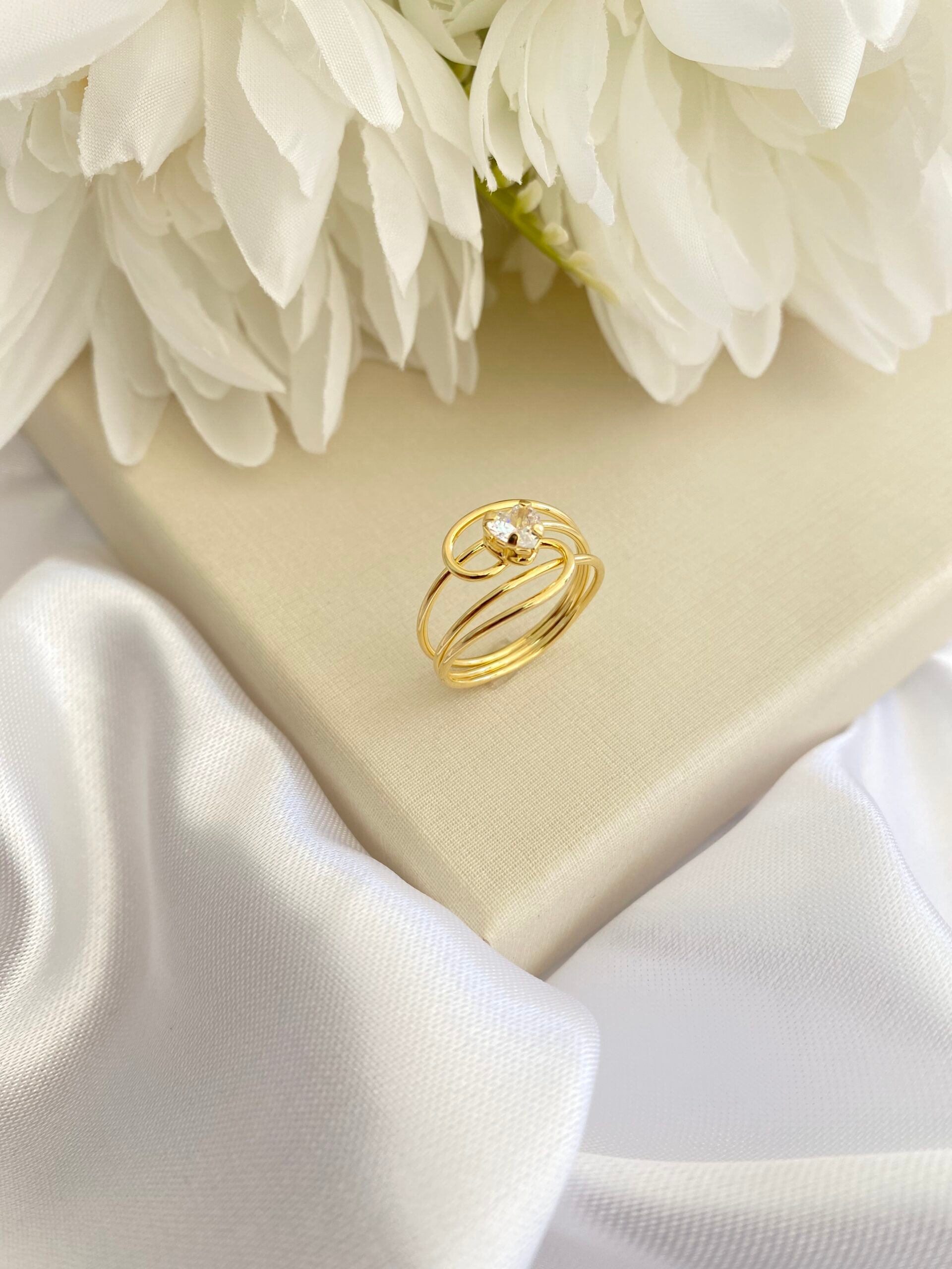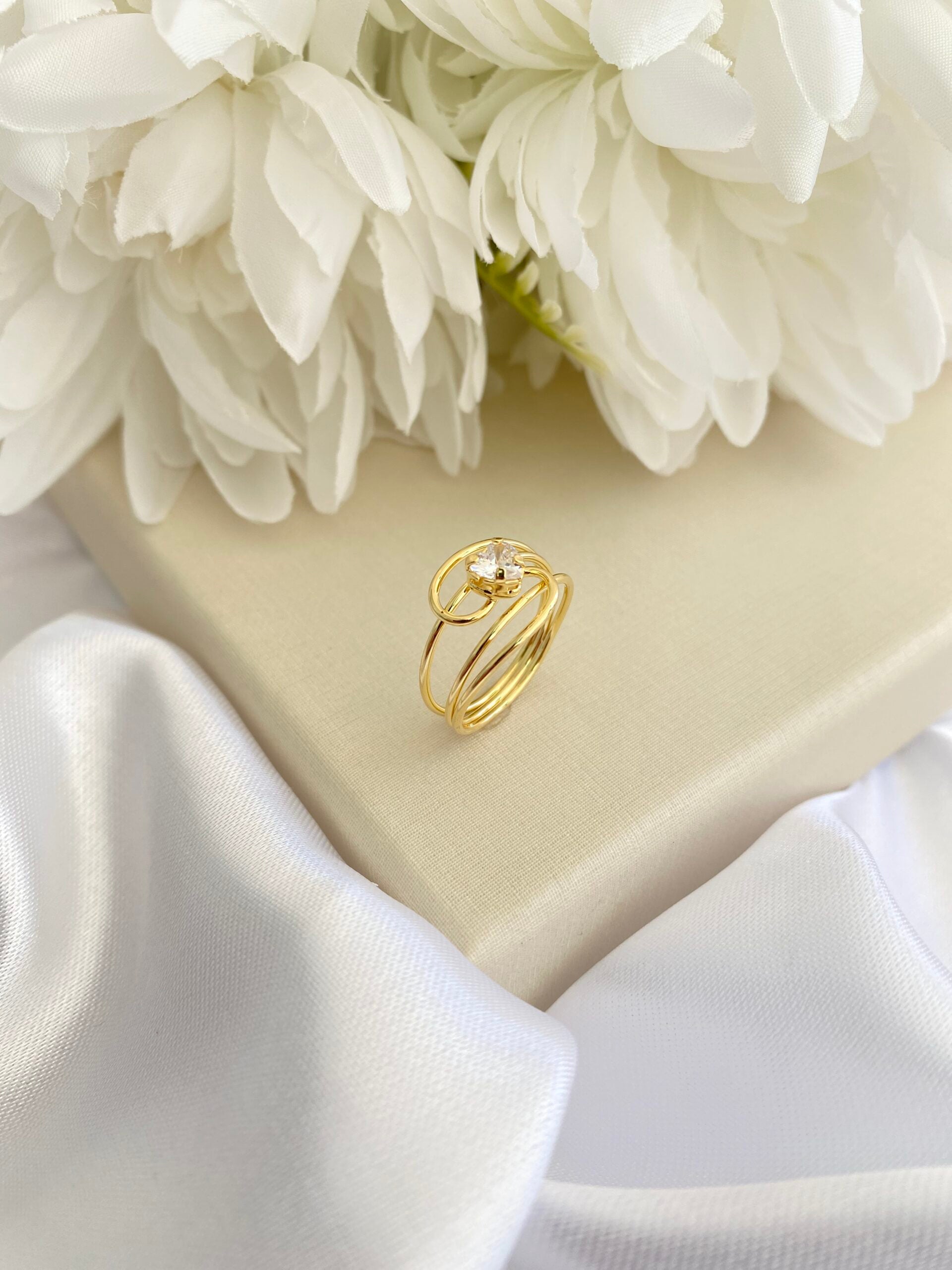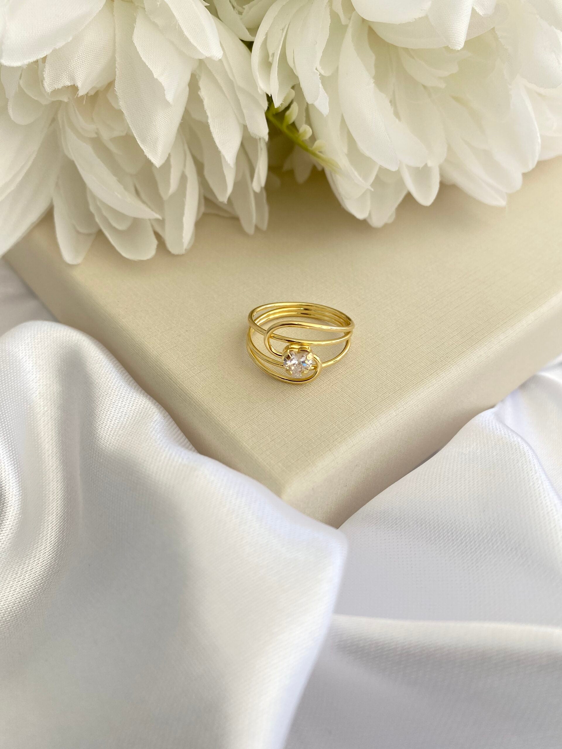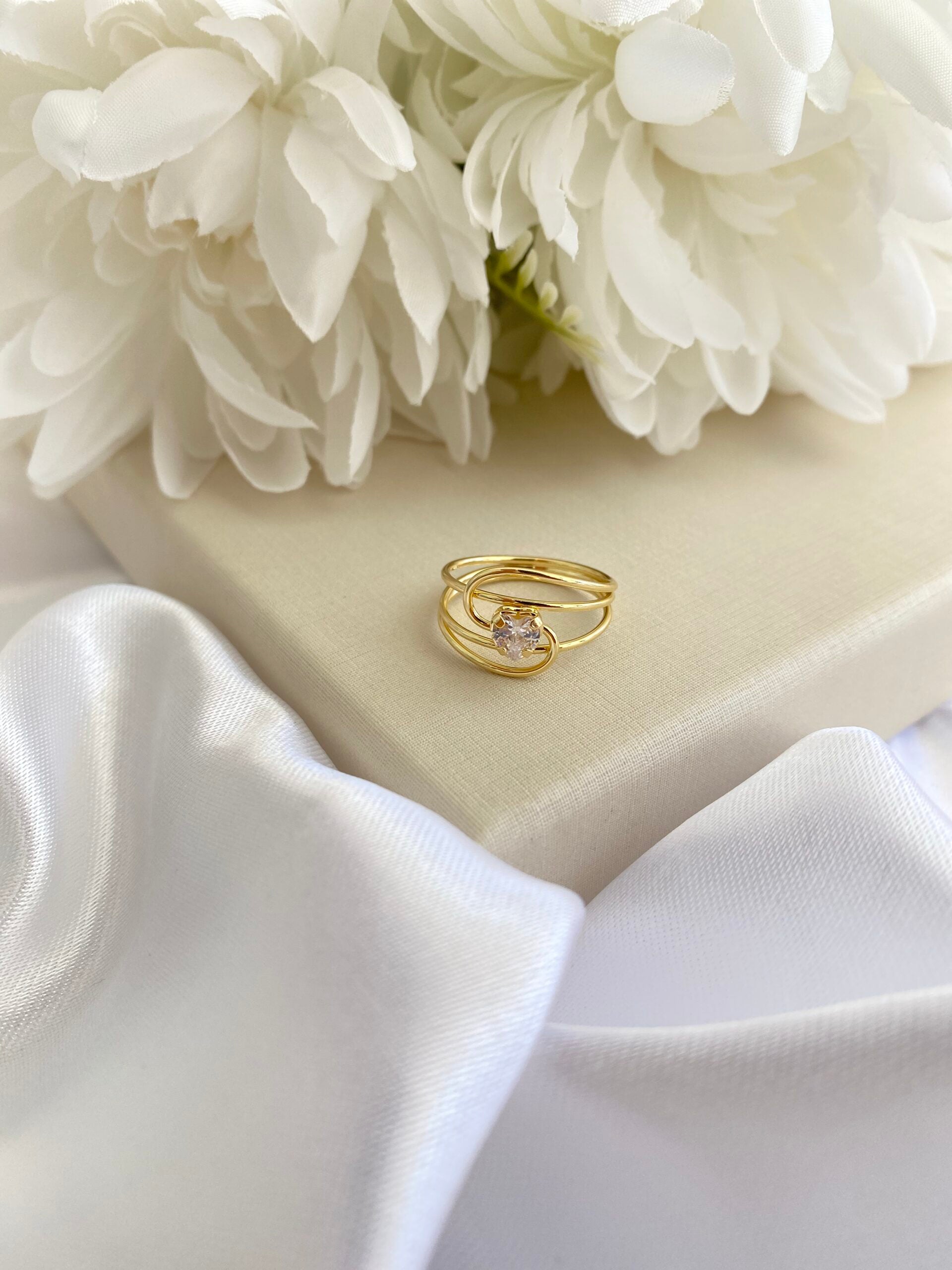 Design: Aro triplo com aplicação de cristal em formato de coração