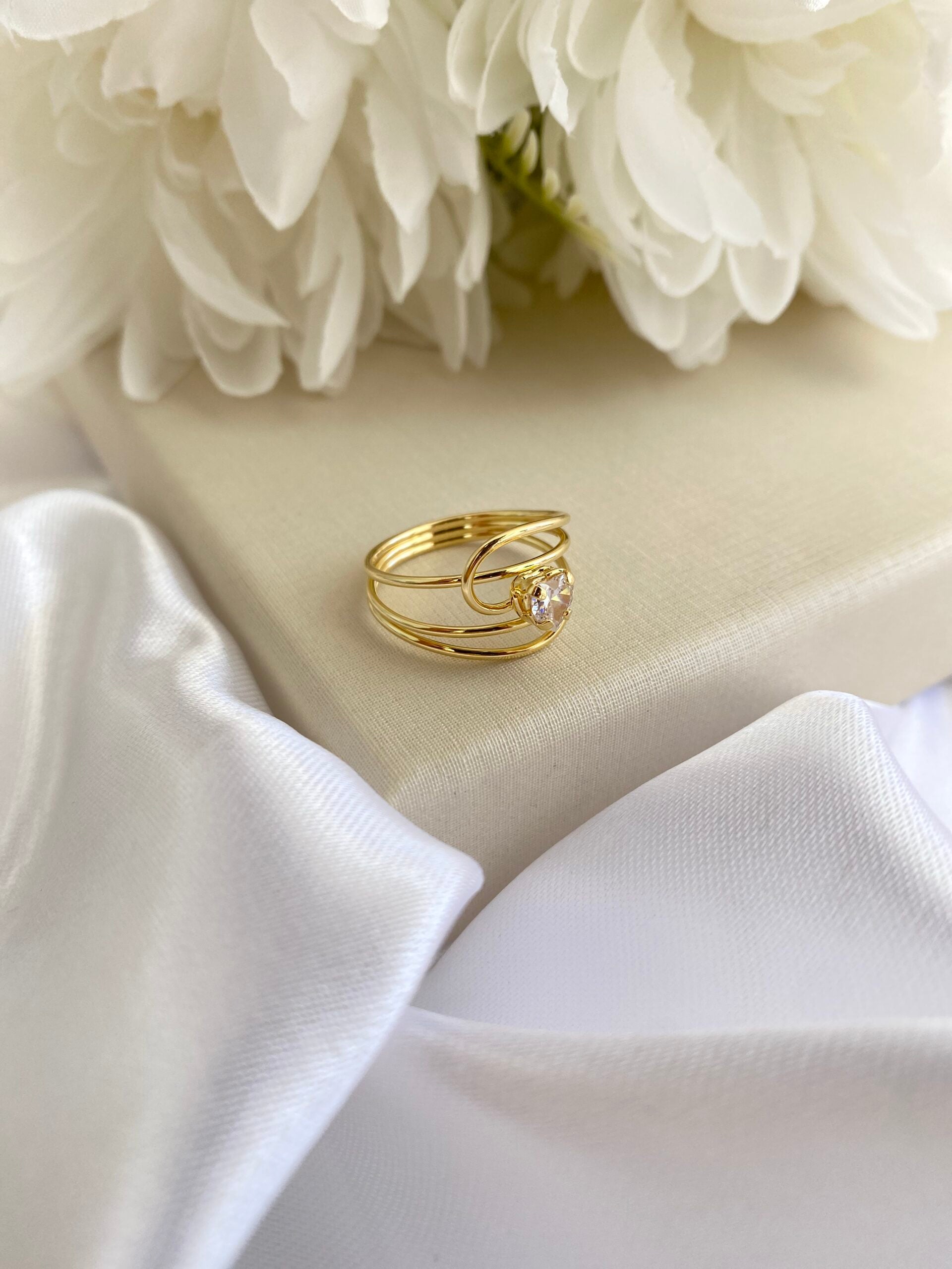 O Anel Coração Eterno apresenta um design moderno com aro triplo e um cristal em forma de coração que simboliza o amor duradouro. A estrutura em banho de ouro garante brilho e elegância, ideal para quem deseja expressar sentimentos com estilo.