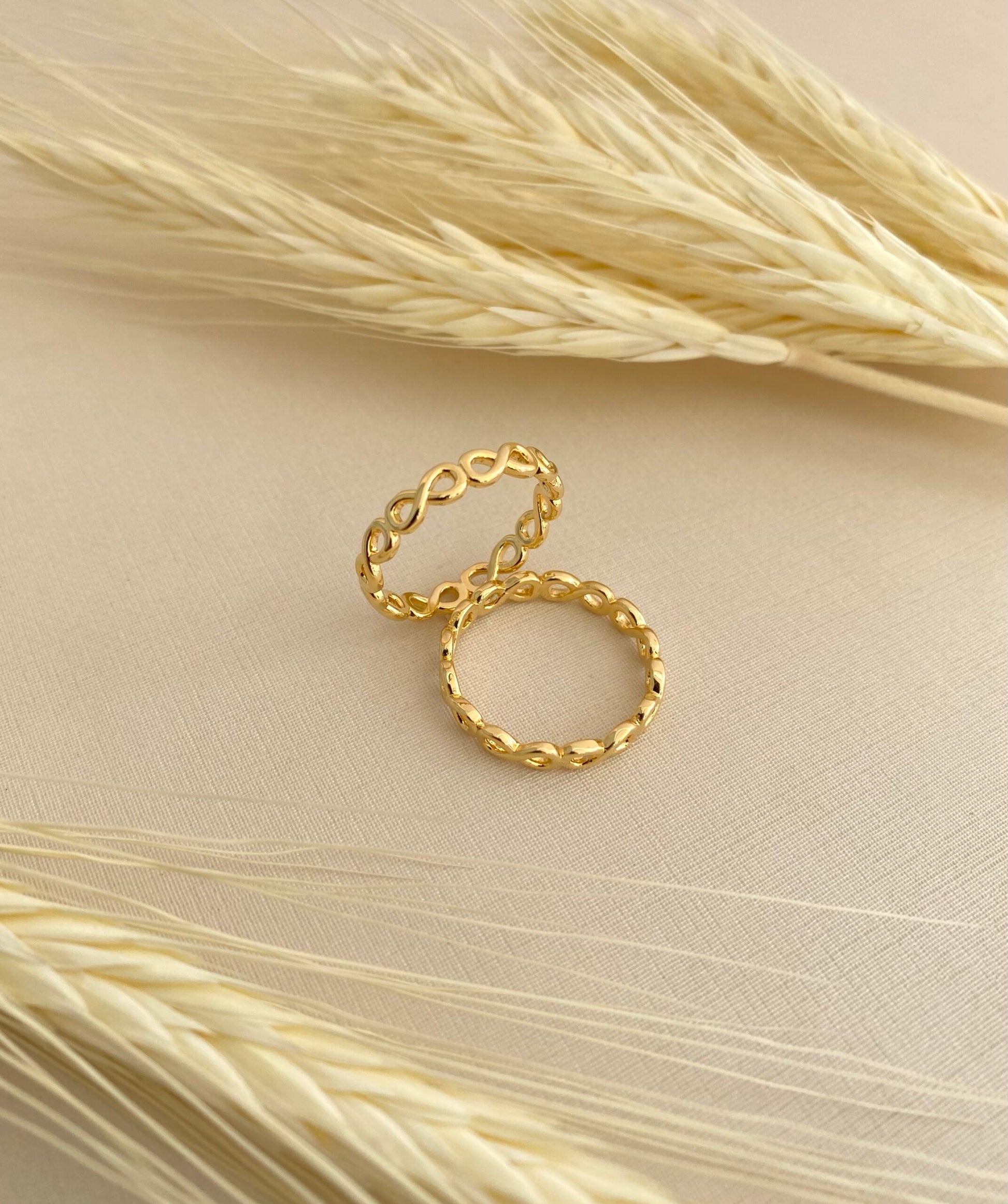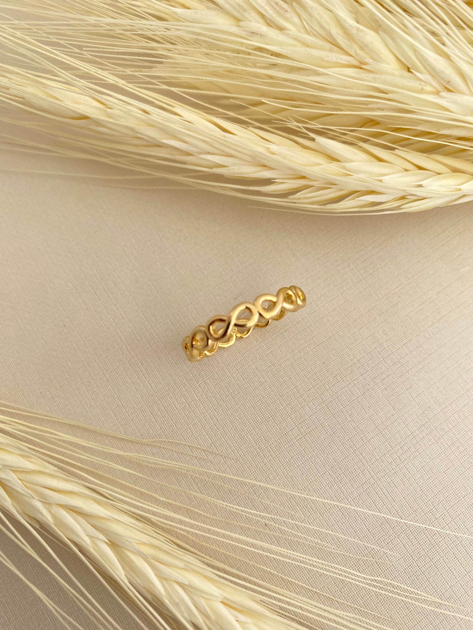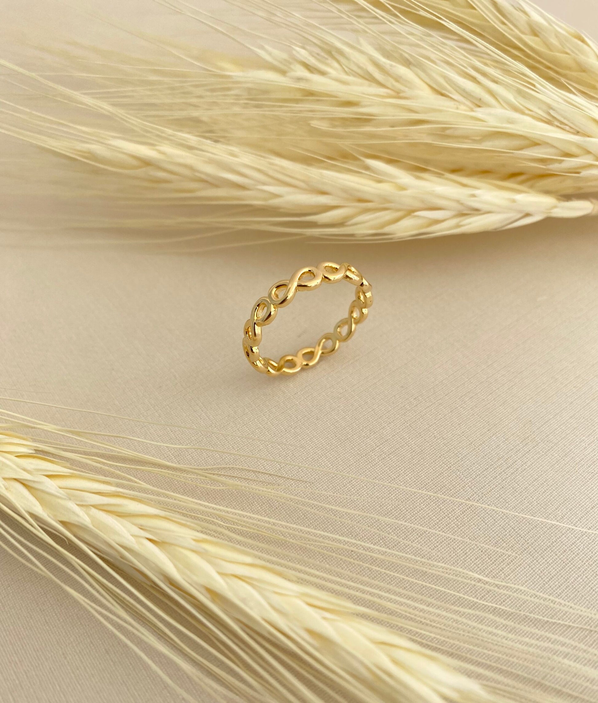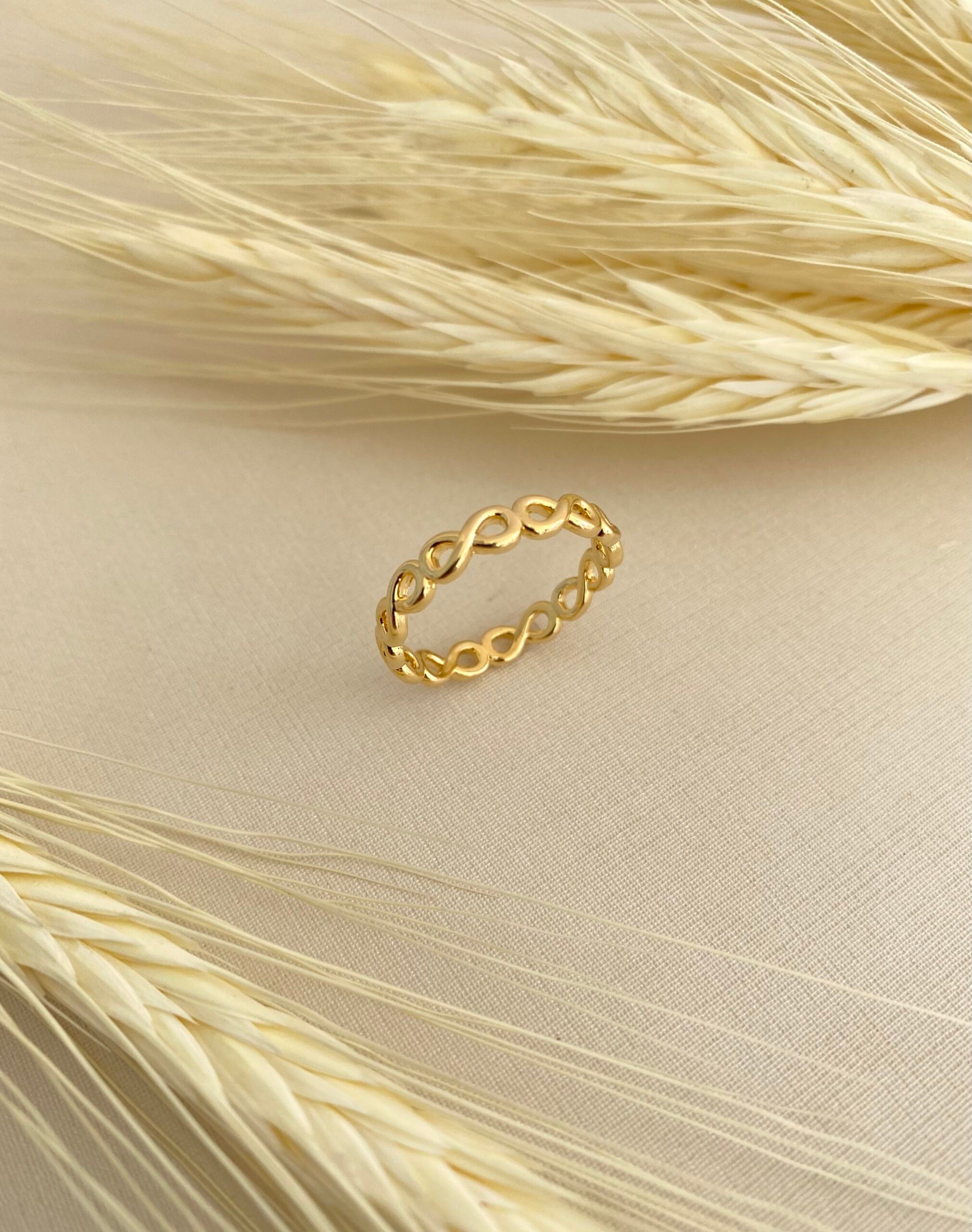 O Anel Infinito é a representação perfeita de eternidade, conexão e amor sem fim. Com um design minimalista e delicado, ele é composto por uma sequência contínua de símbolos do infinito, que formam uma trama leve e harmoniosa.