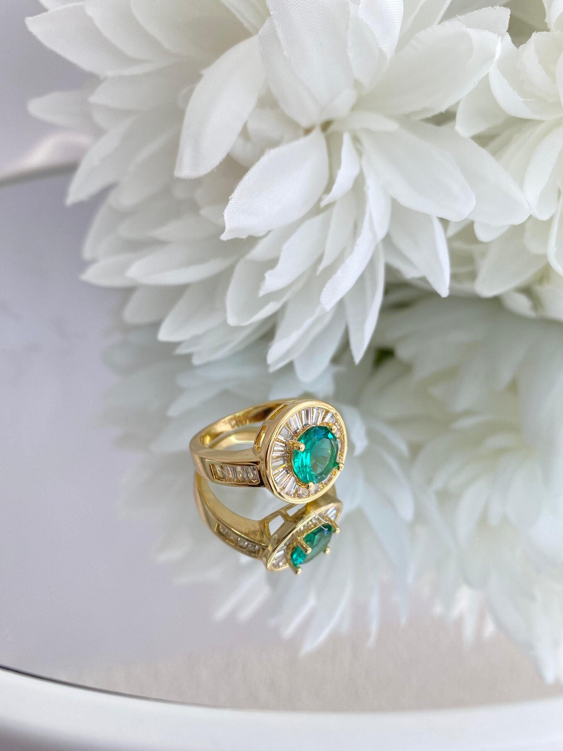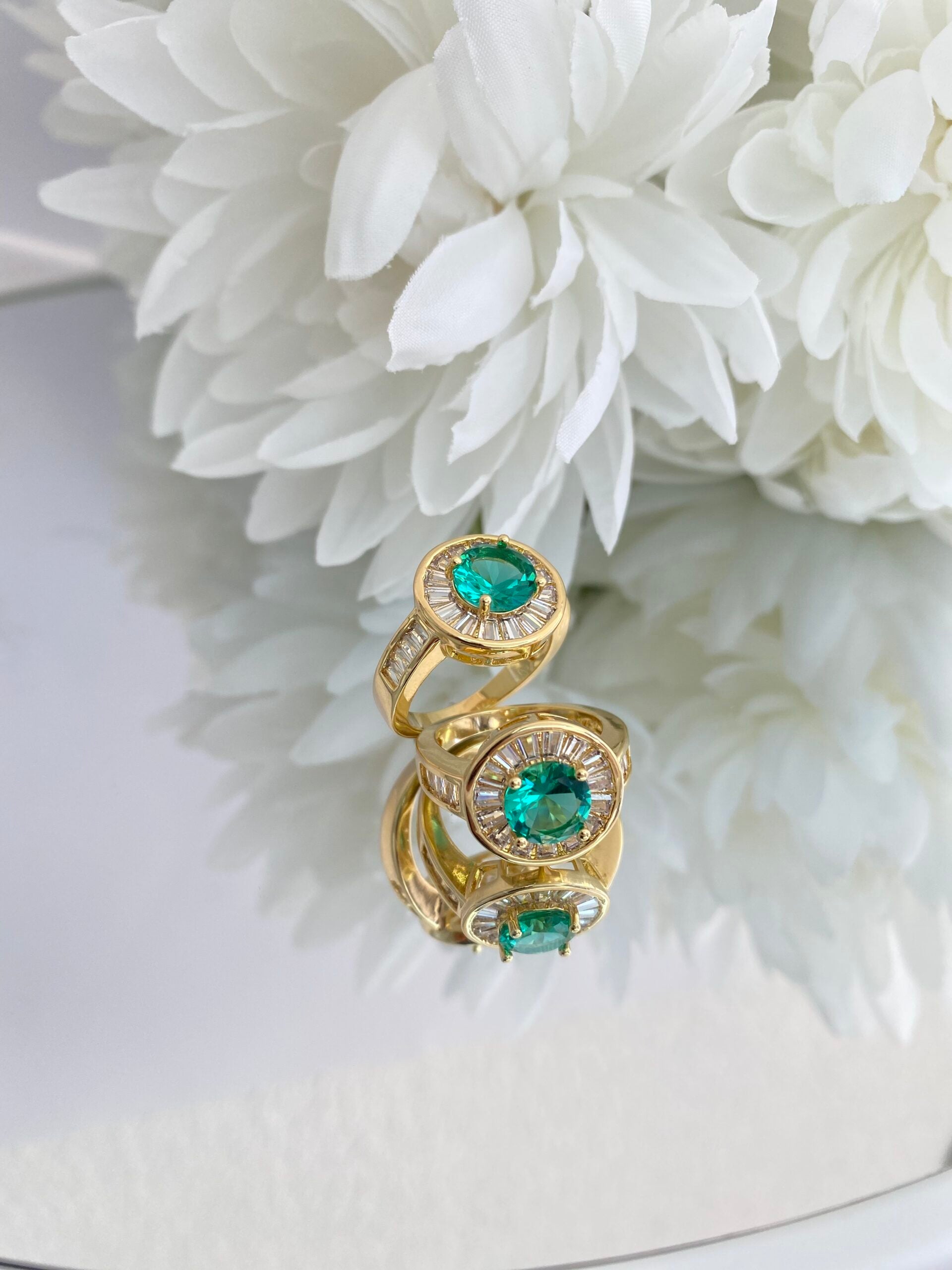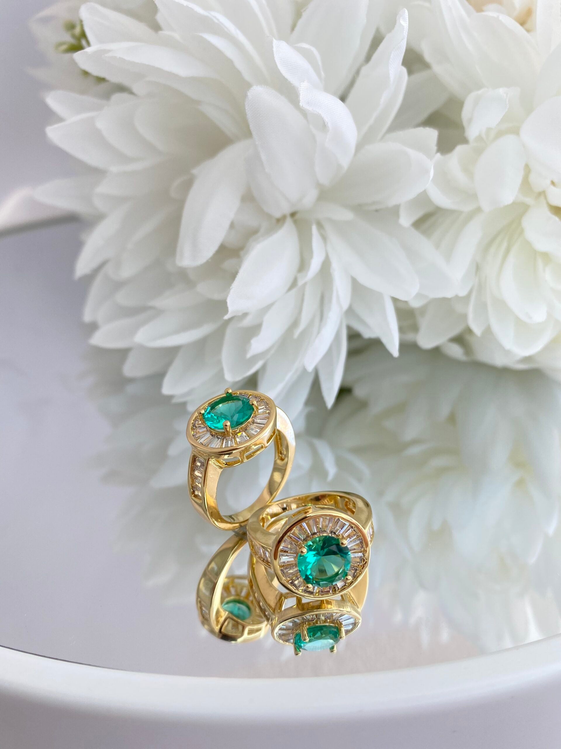 Um anel imponente, elegante e cheio de personalidade. O Anel Pedra Verde Imperial é uma verdadeira joia de destaque, com uma lapidação sofisticada e brilho incomparável. A peça traz no centro uma pedra verde intensa, emoldurada por uma delicada composição de zircônias lapidadas em baguete, que formam um halo luminoso ao redor da pedra principal. Um design que une o clássico ao moderno em uma harmonia perfeita.