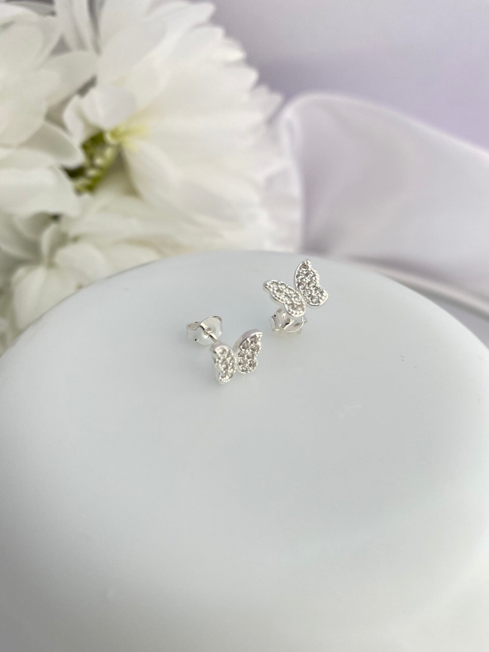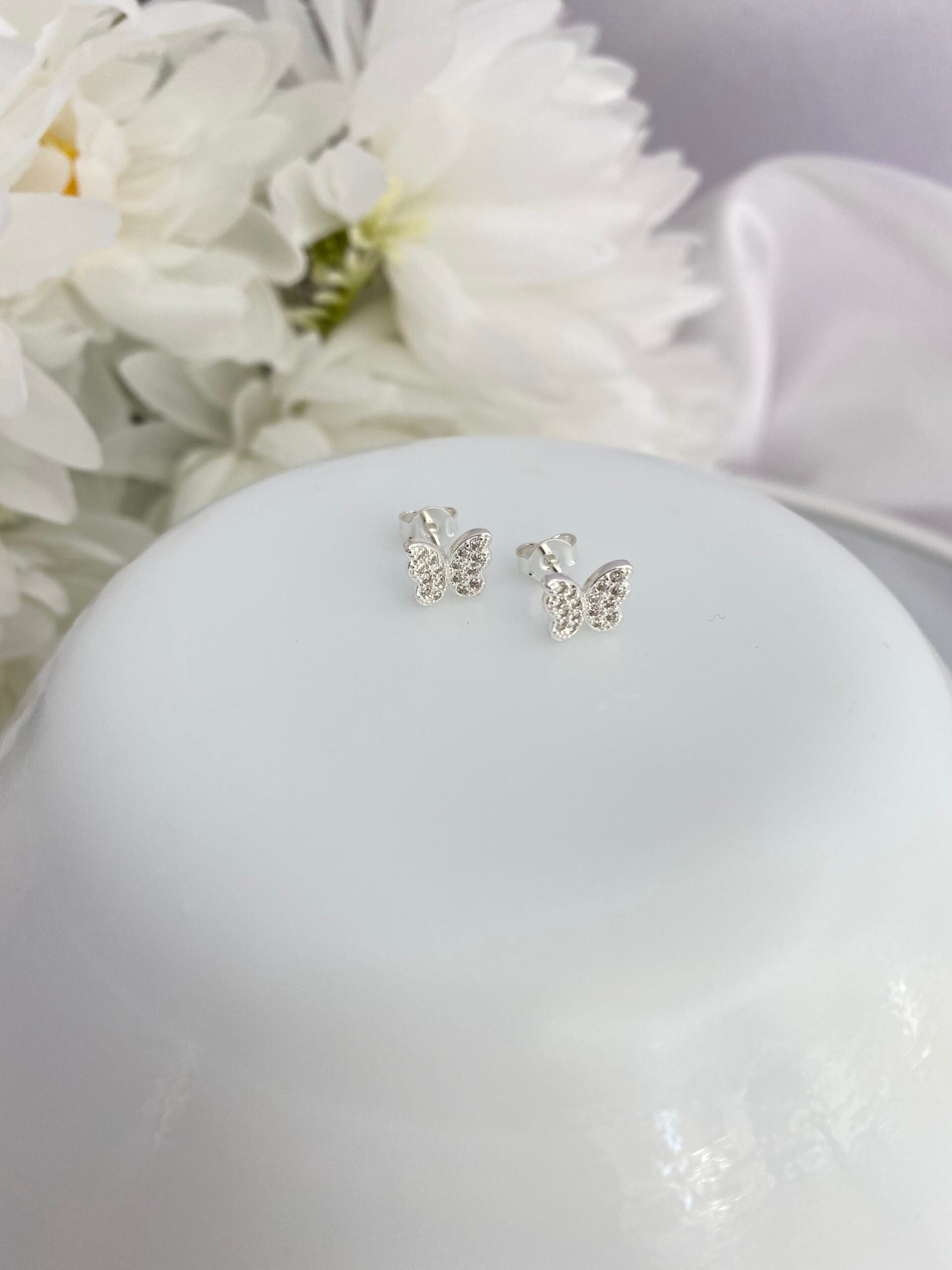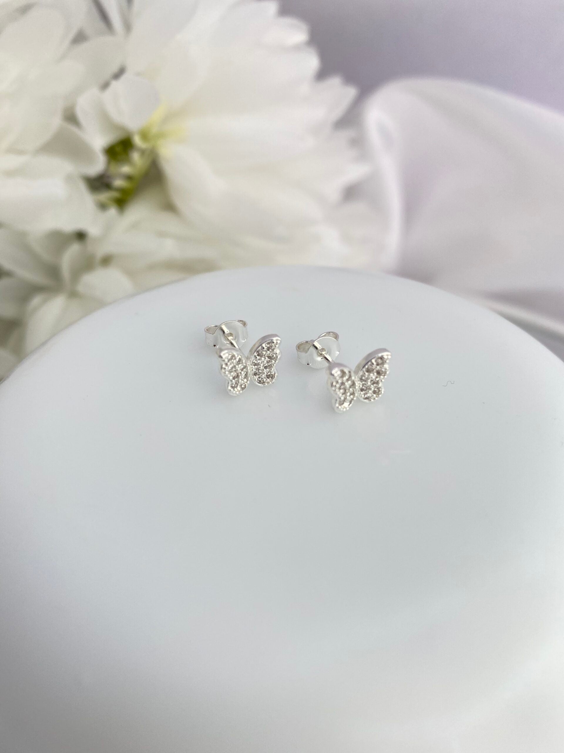BRINCO PRATA BORBOLETA CRAVEJADO