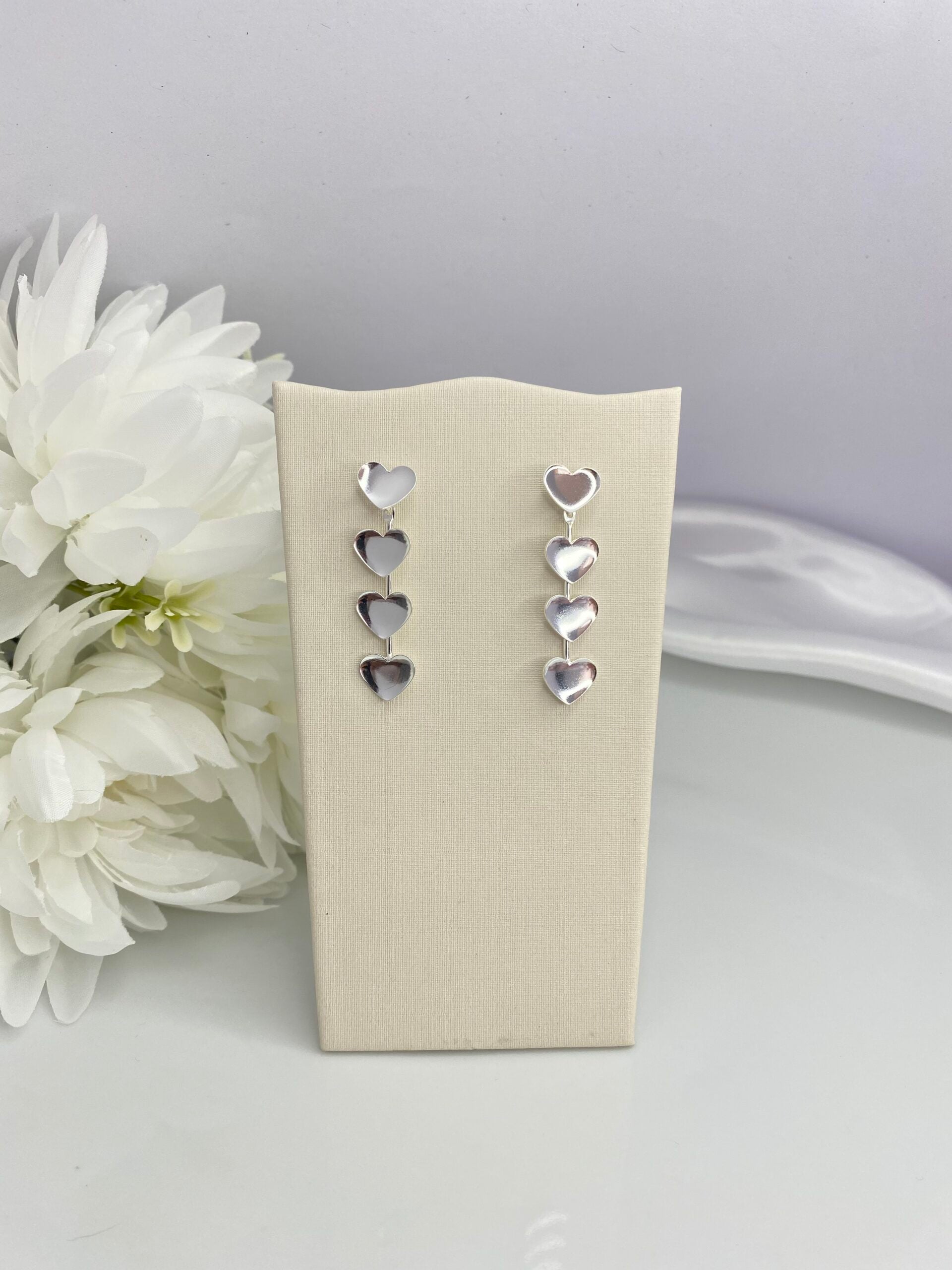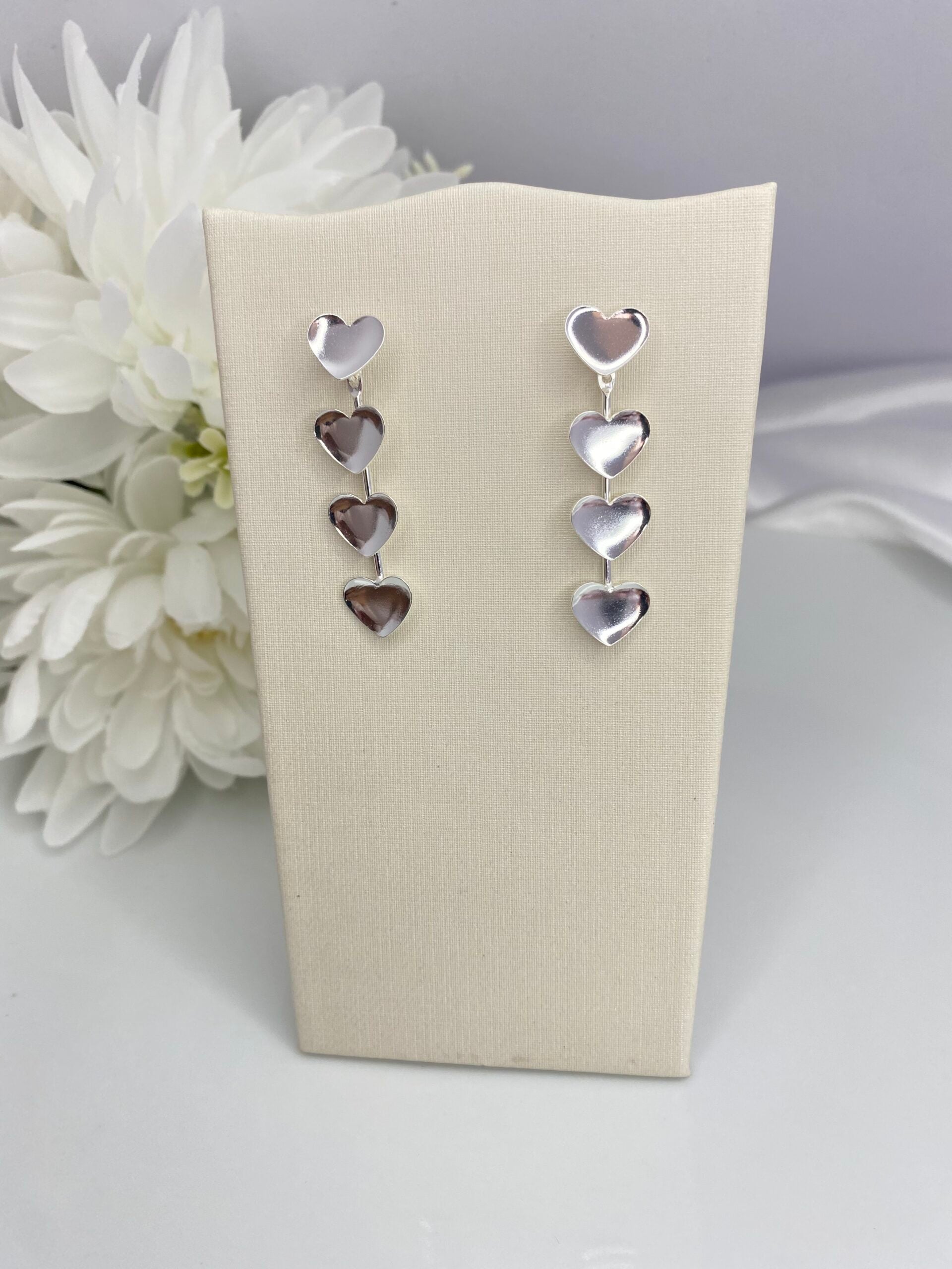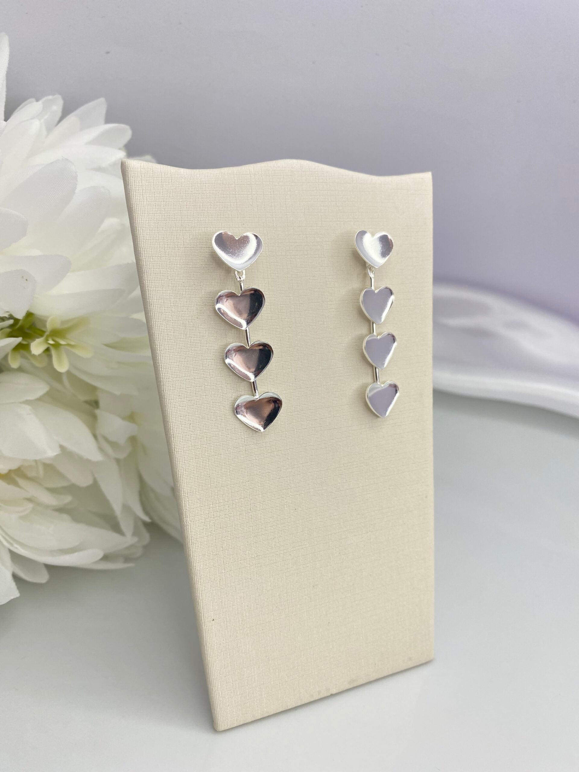BRINCO PRATA CORAÇÕES EM CASCATA
