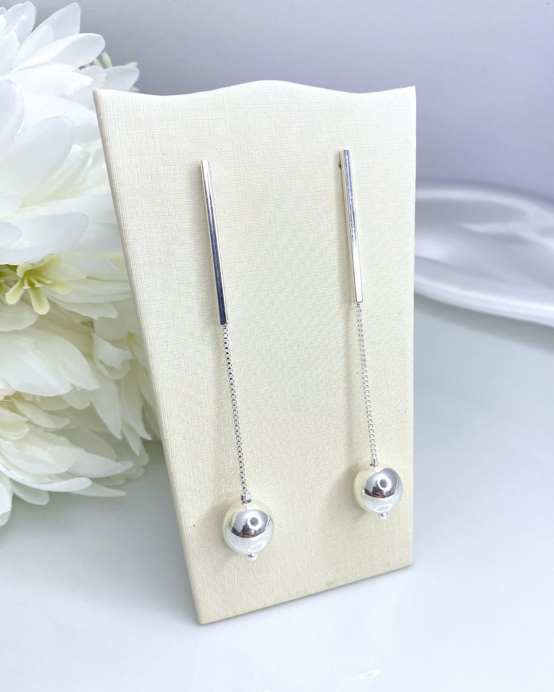 Seu formato vertical valoriza o contorno do rosto e alonga a silhueta, tornando-se uma escolha elegante para quem aprecia joias contemporâneas com presença sutil. O brilho espelhado da esfera traz um toque refinado, ideal para composições versáteis que transitam do dia à noite com naturalidade.