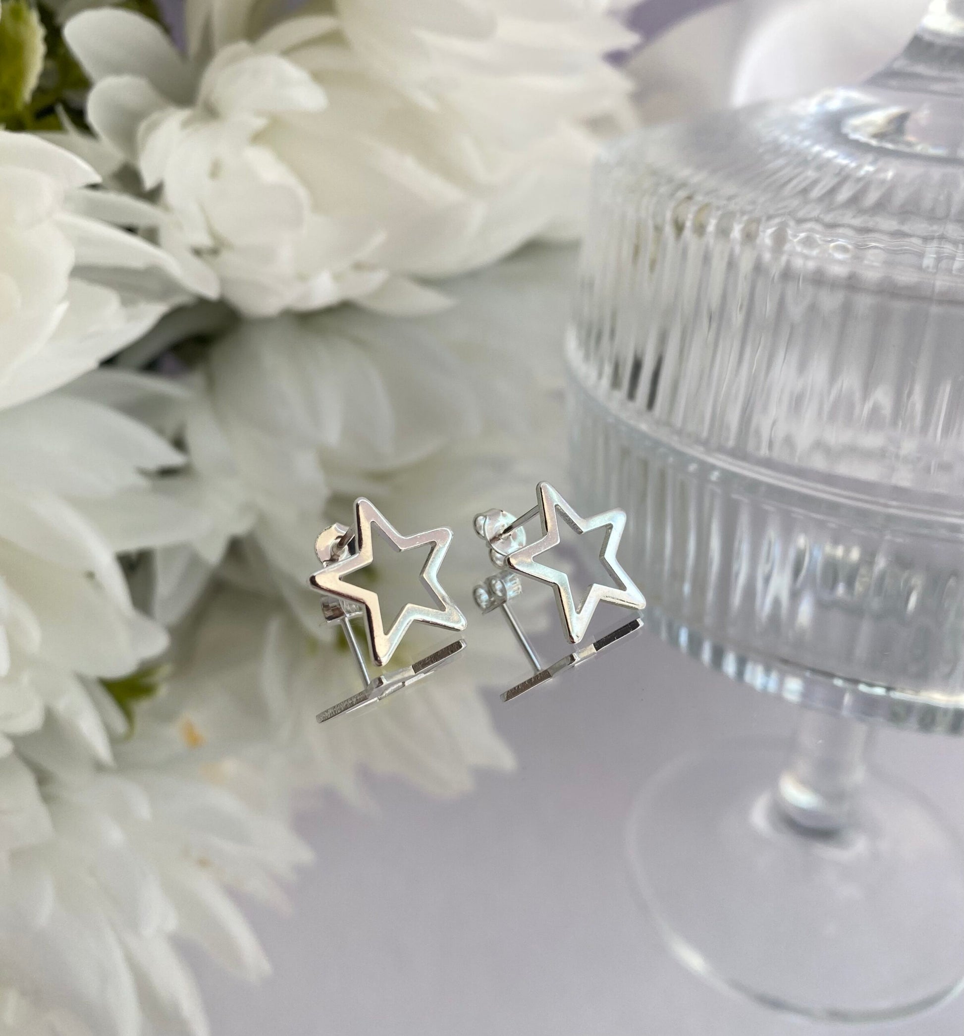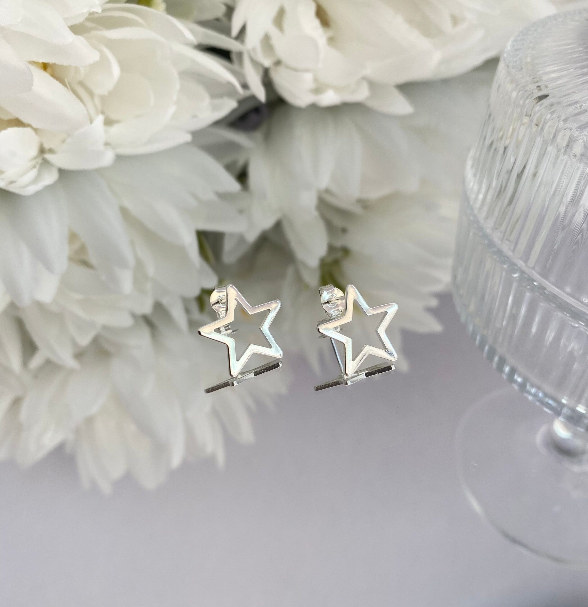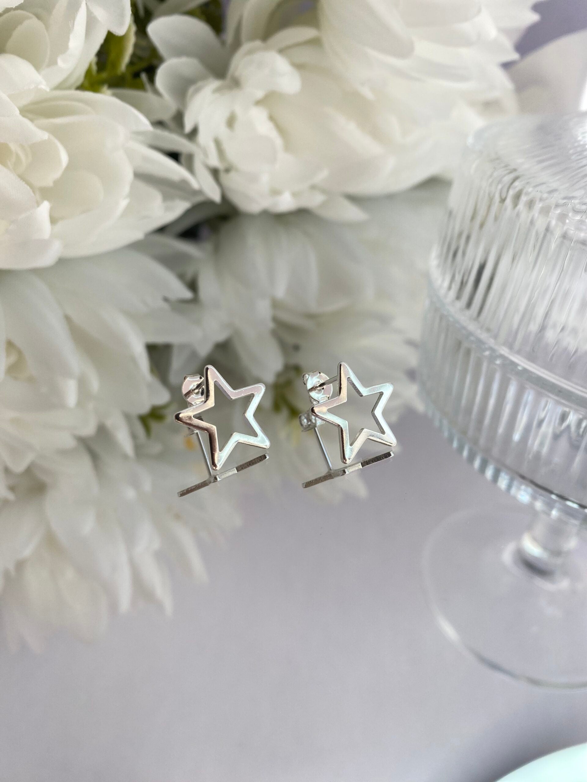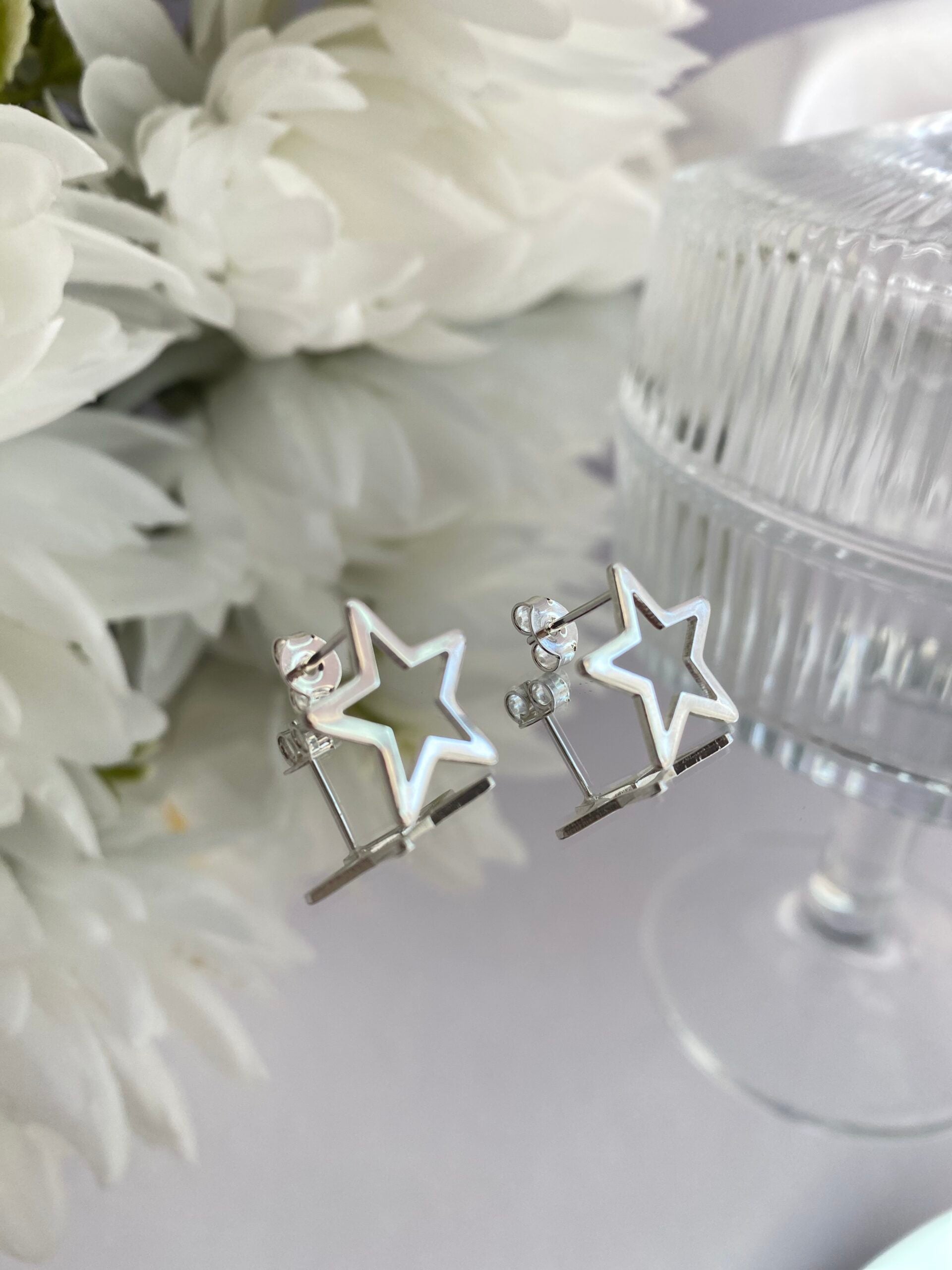 BRINCO PRATA ESTRELA VAZADO MÉDIO