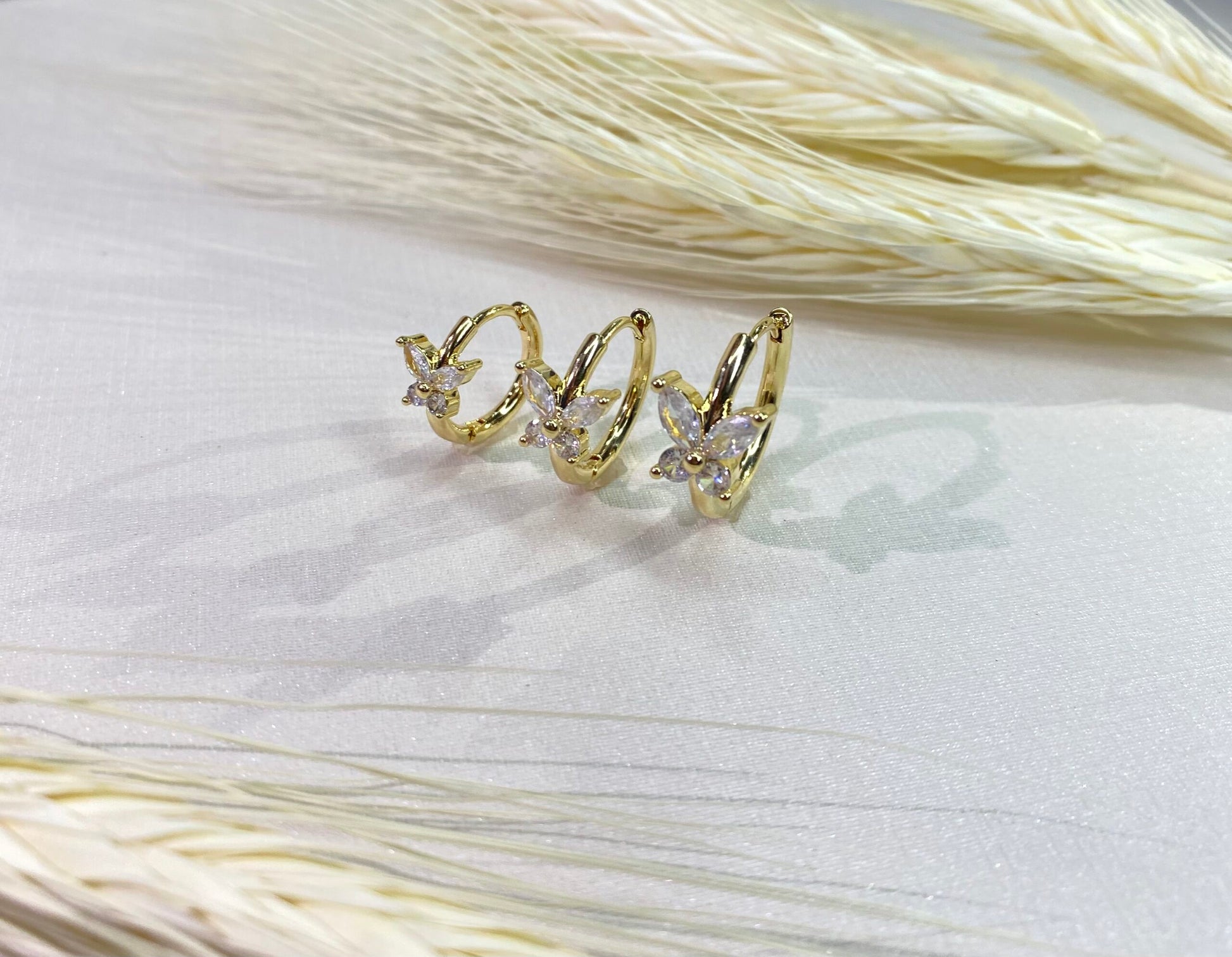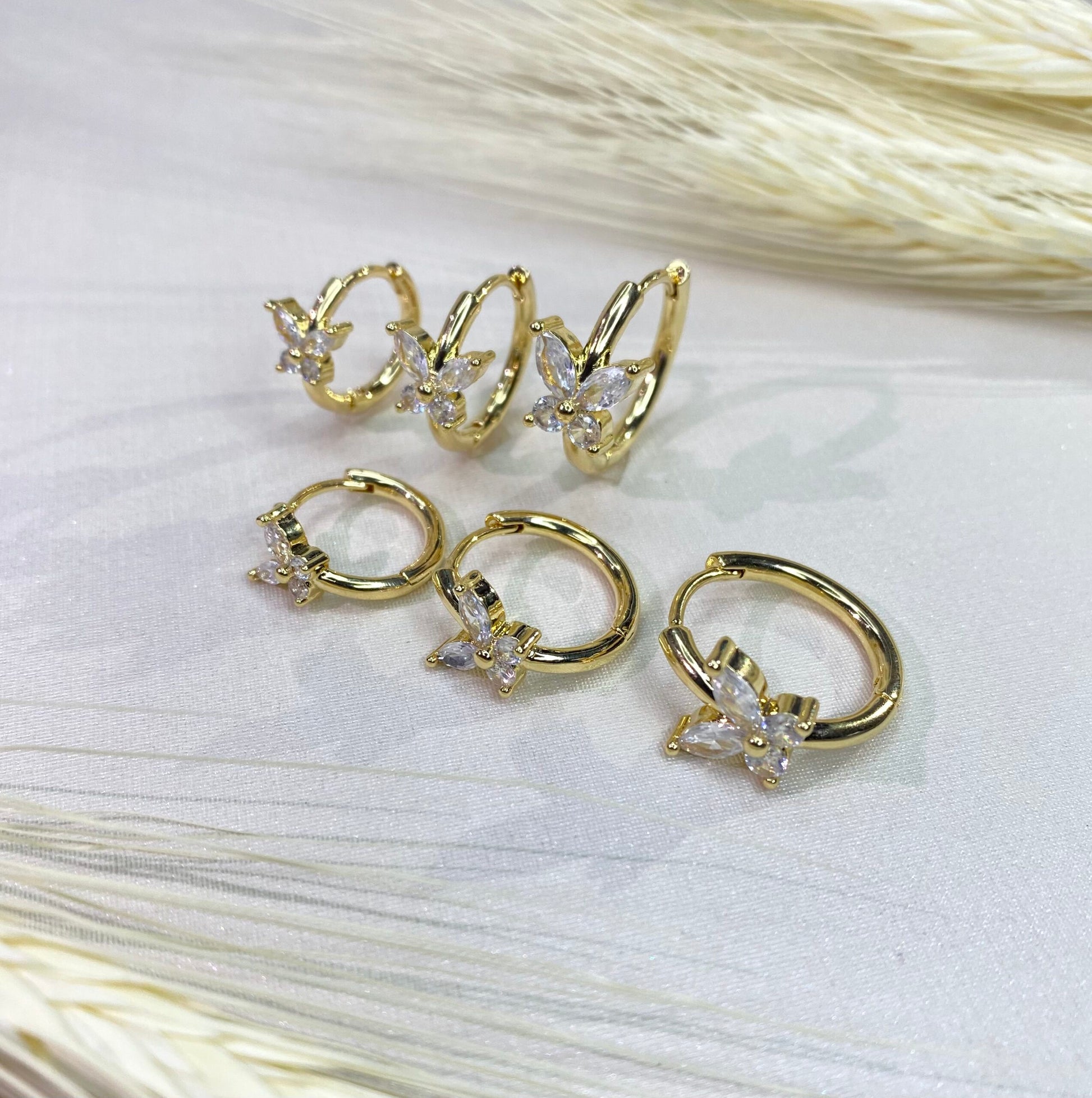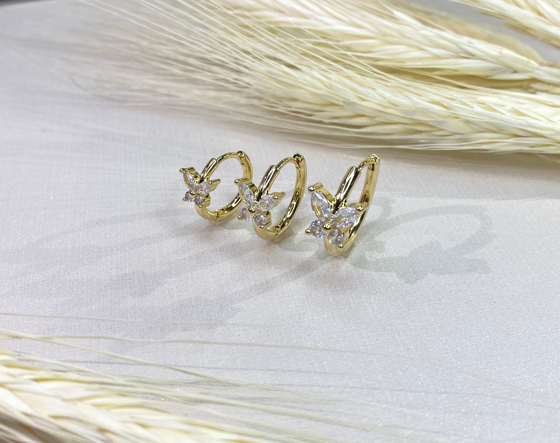 Brinco Banhado Ouro 18k Com Navetes Zircônia