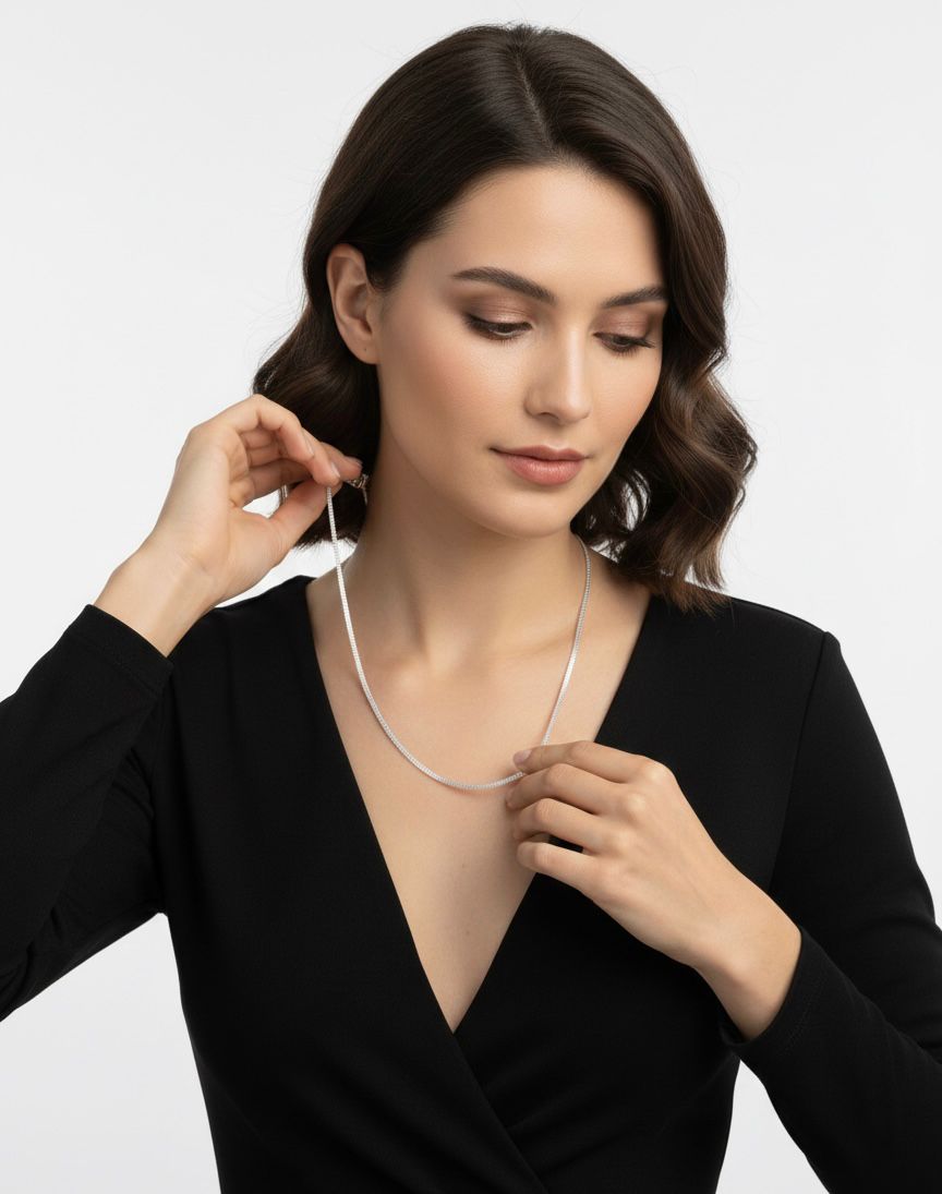 O Colar Prata Fio de Brilho Banhado em Prata é uma joia essencial, versátil e sofisticada, perfeita para iluminar qualquer look com delicadeza, brilho e elegância em todos os momentos.