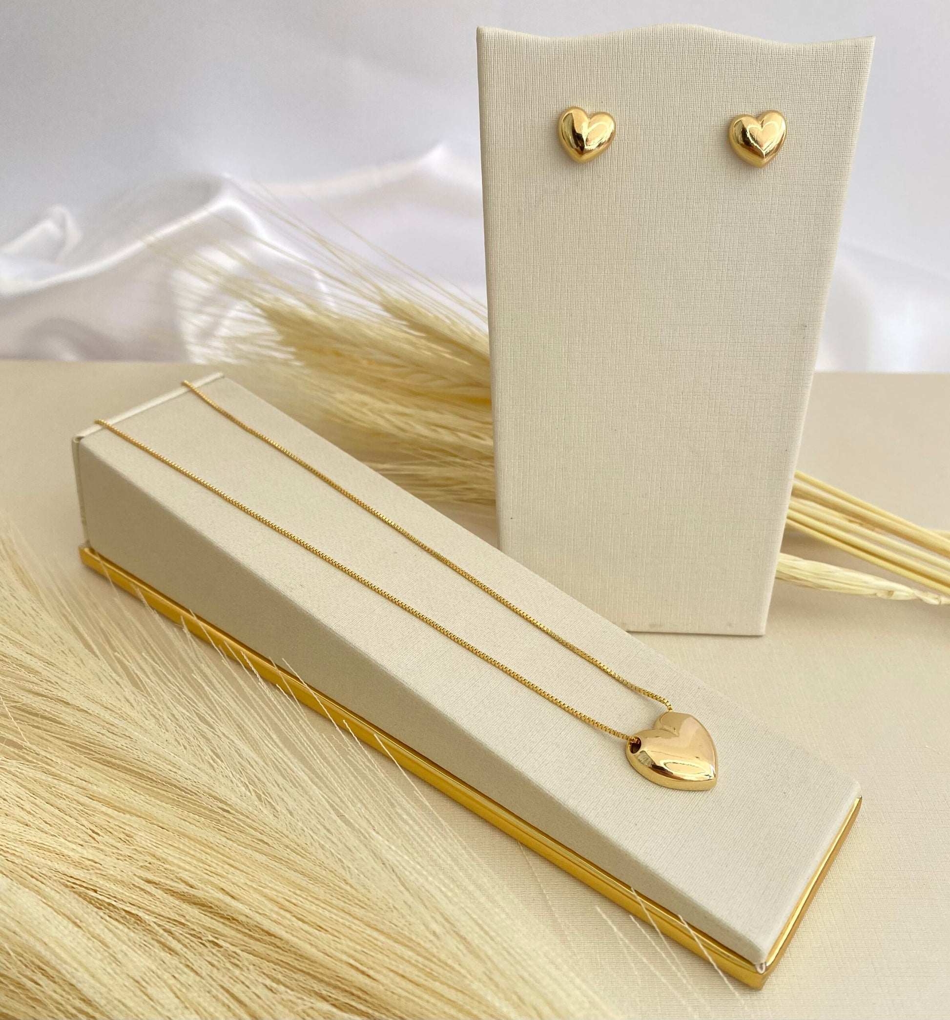 • Pingente e brincos em formato de coração liso