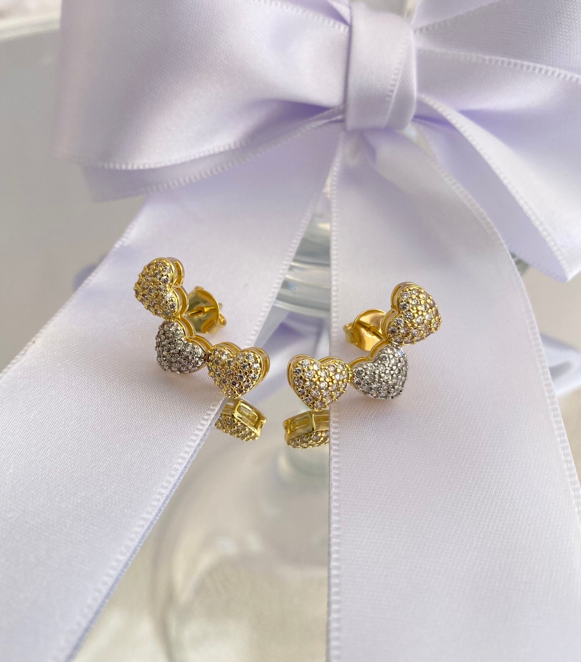 Um conjunto que traduz a beleza do amor em cada brilho. O Trio Coração Cravejado combina a delicadeza dos corações com o luxo das zircônias, criando uma composição encantadora e cheia de significado. Composto por colar e brincos com três corações em degradê de brilho, é a escolha perfeita para quem ama joias sofisticadas, femininas e atemporais.