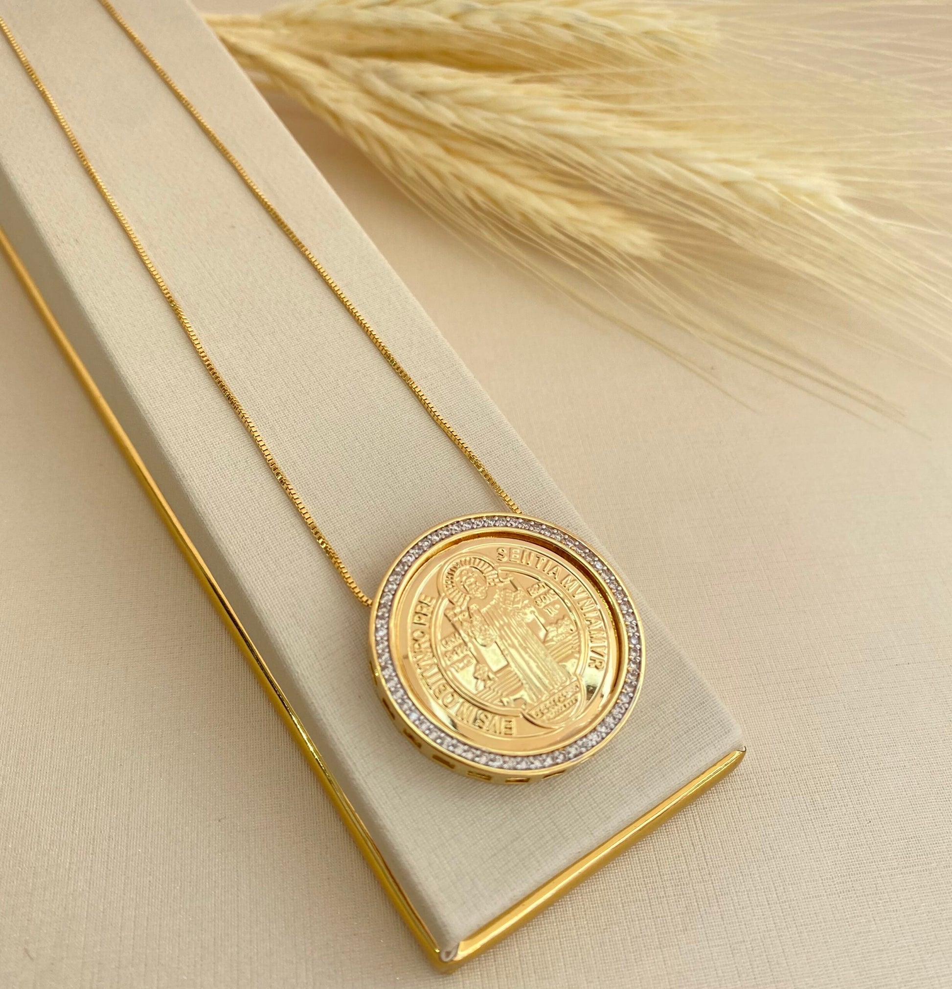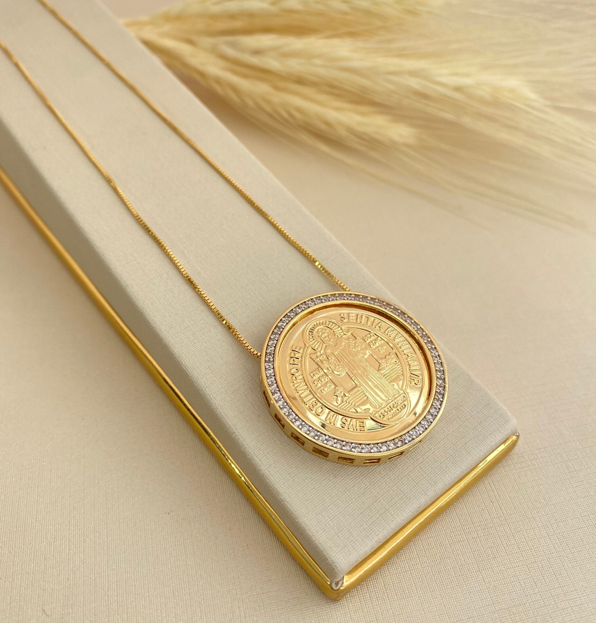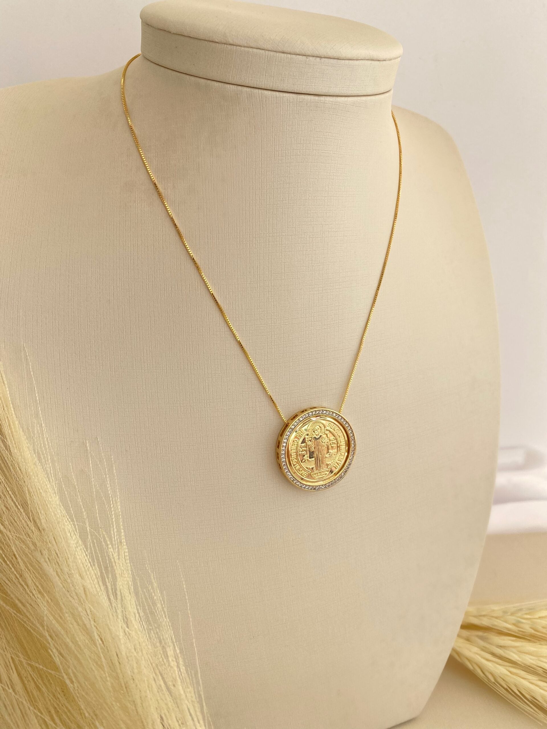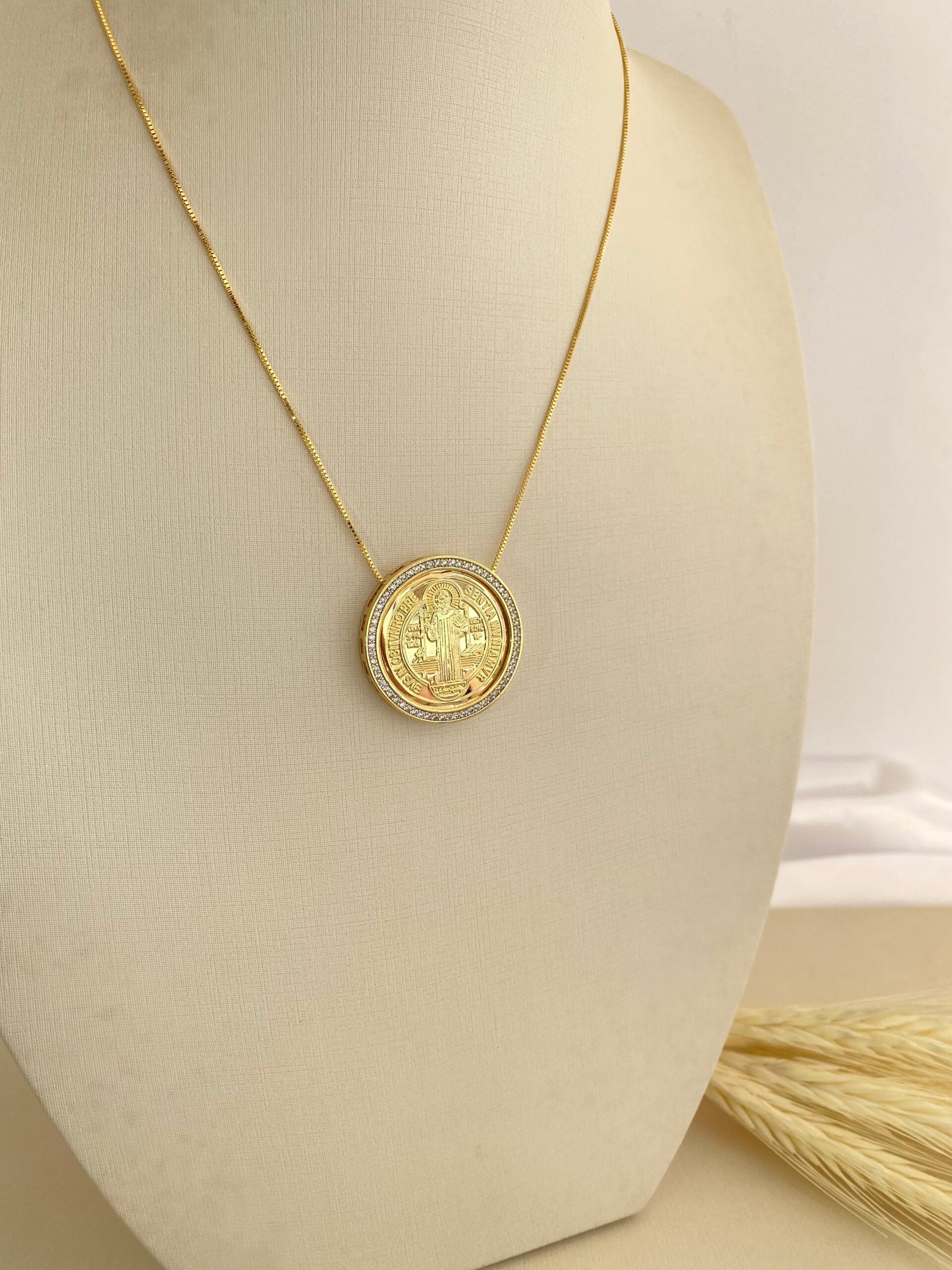 GARGANTILHA MEDALHA SÃO BENTO CRAVEJADO