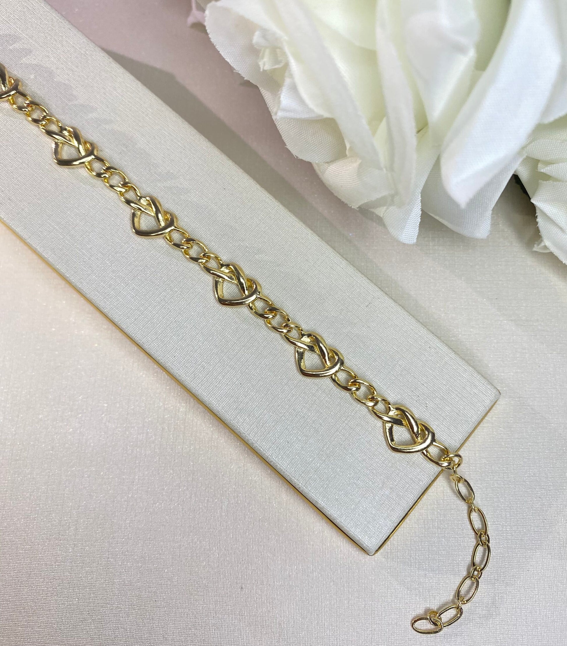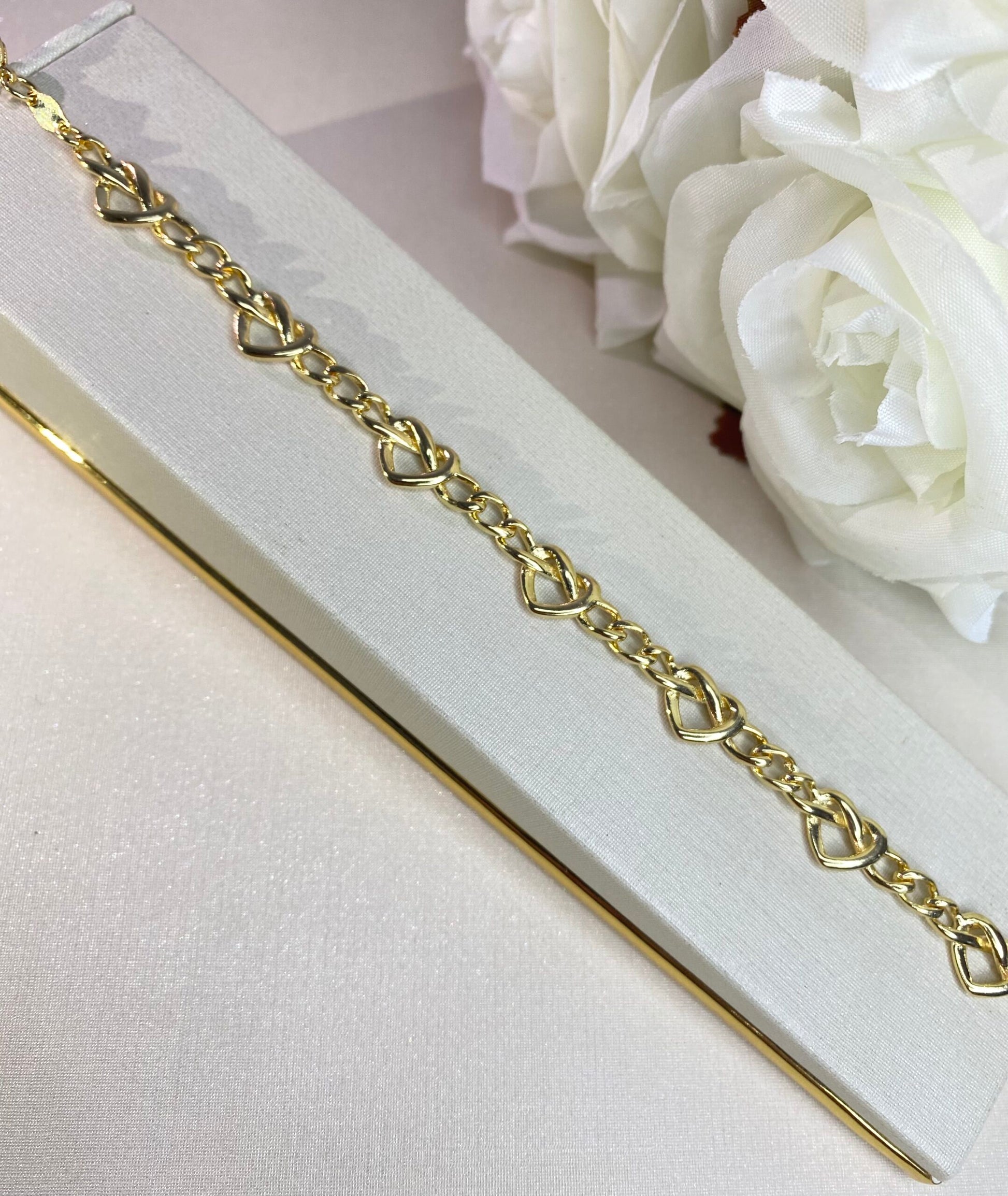Com um design marcante e elegante, a Pulseira Coração Eterno simboliza o amor contínuo que nunca se desfaz. Cada elo em forma de coração entrelaçado transmite romantismo e sofisticação, tornando essa peça perfeita para quem ama expressar sentimentos através da beleza das joias. Banhada a ouro, ela é leve, moderna e cheia de significado.