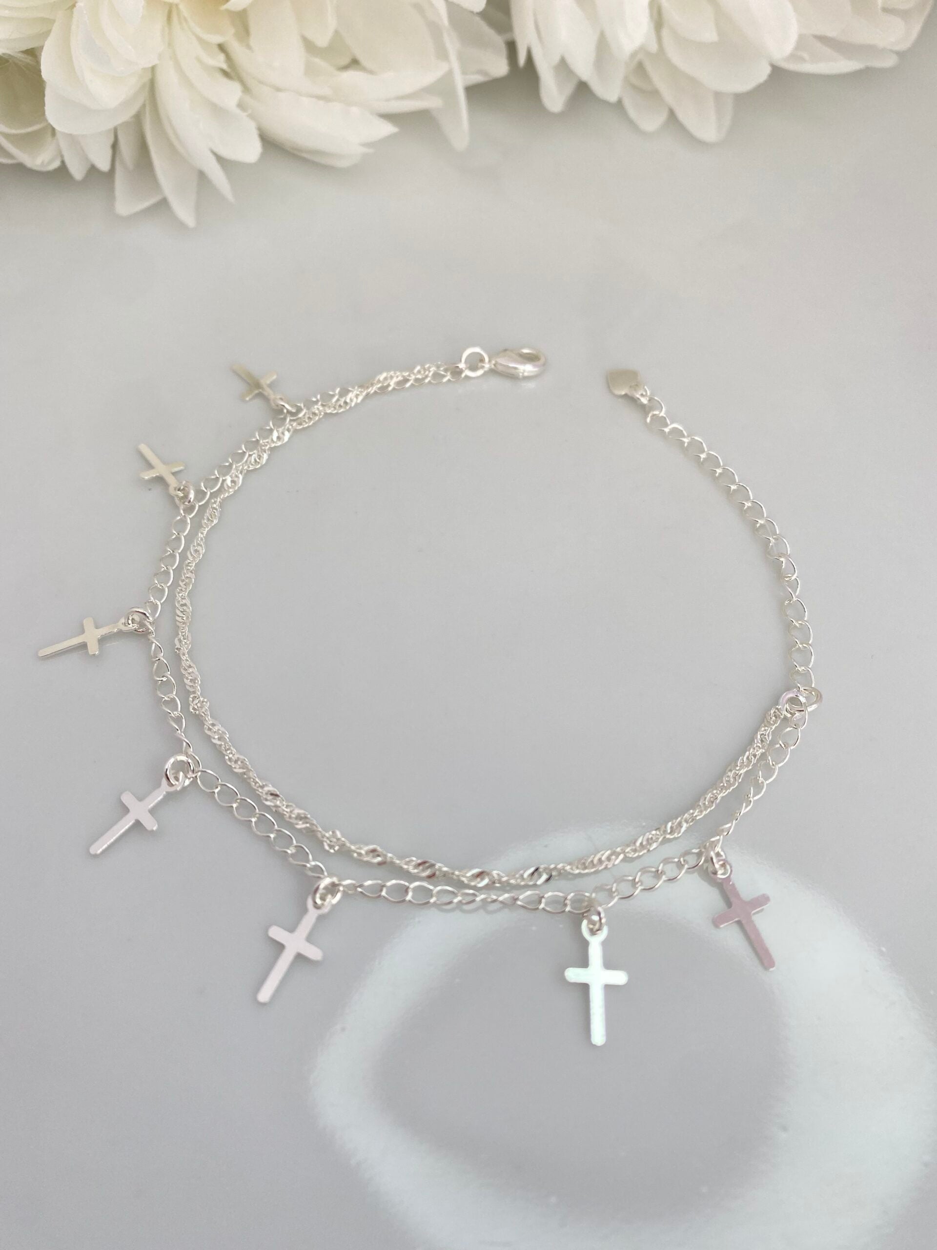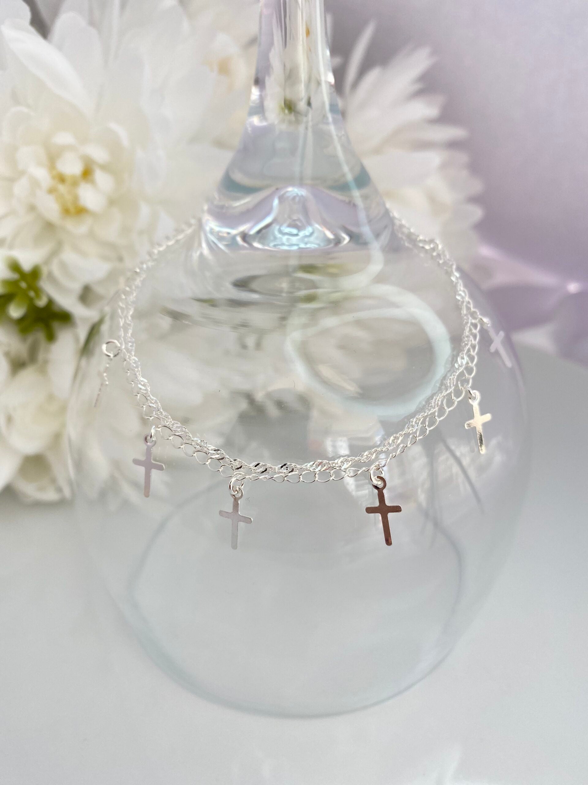 PULSEIRA PRATA COM PINGENTE CRUZ CELESTE