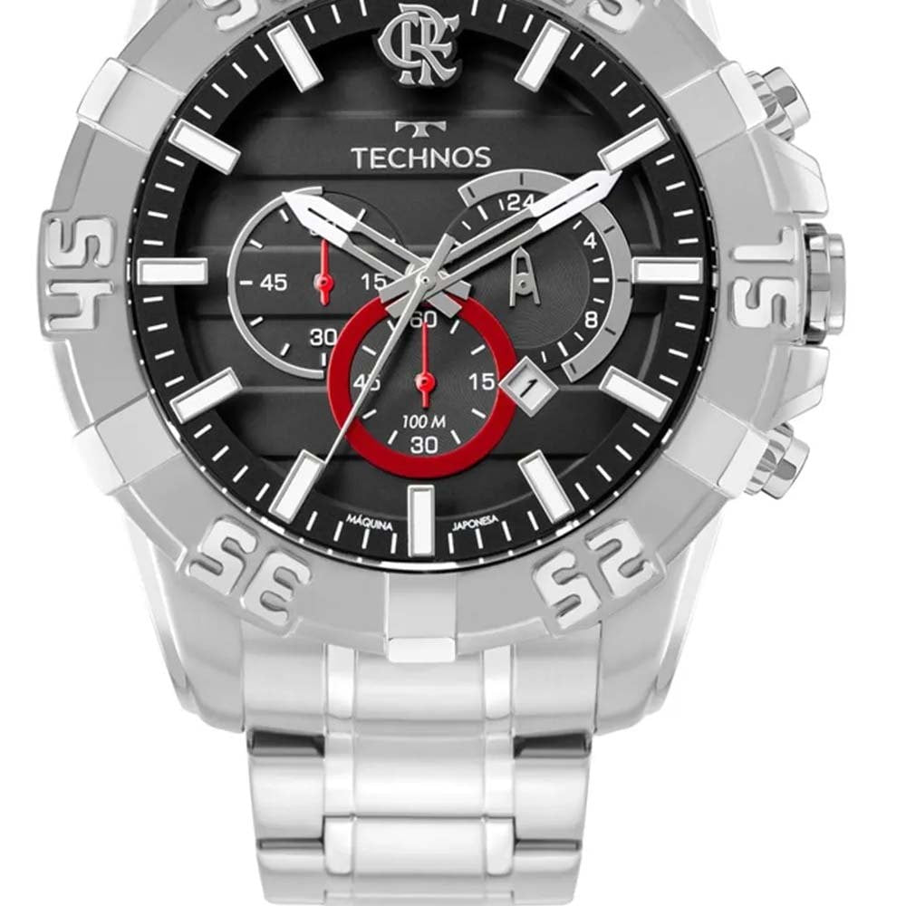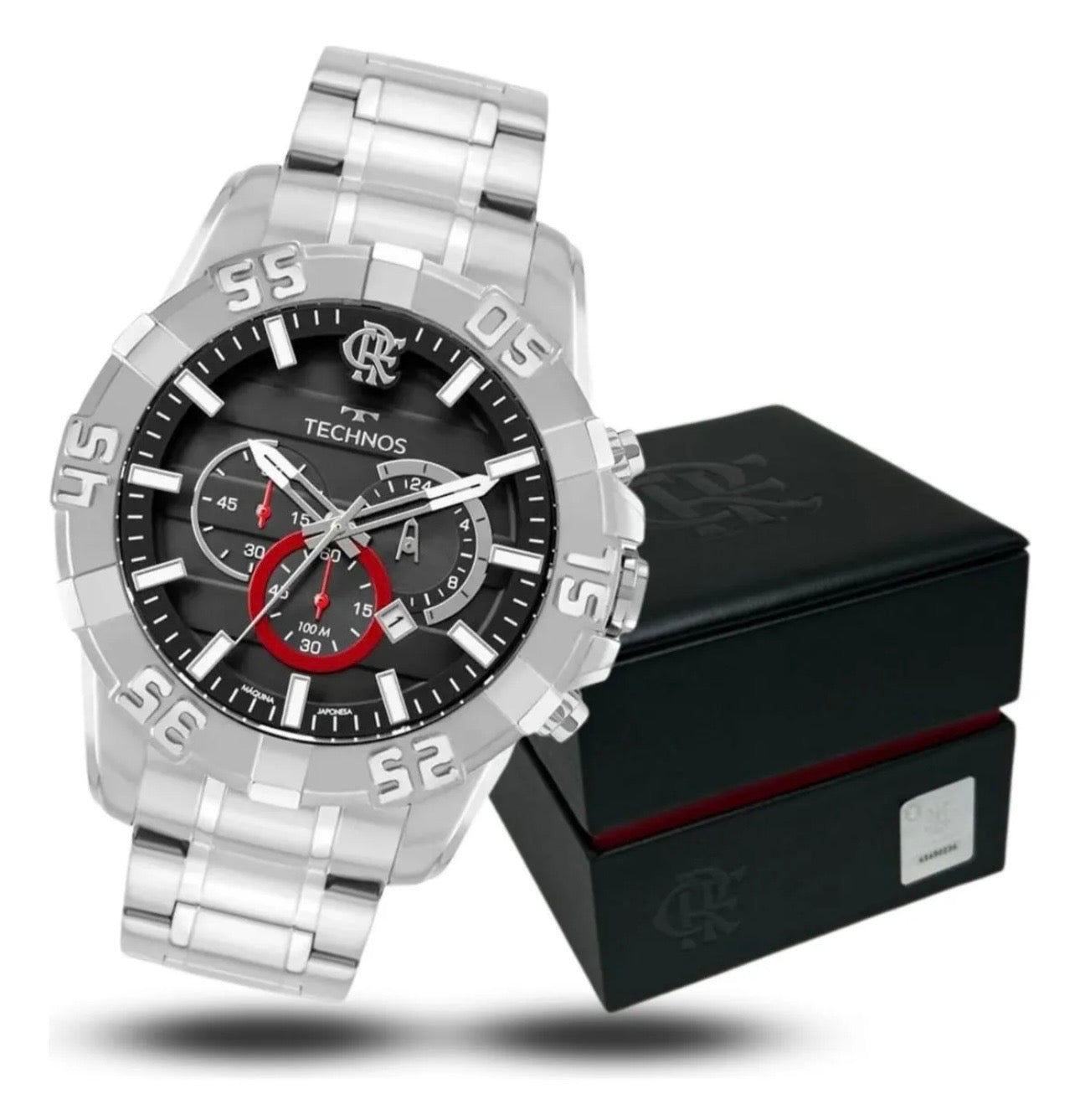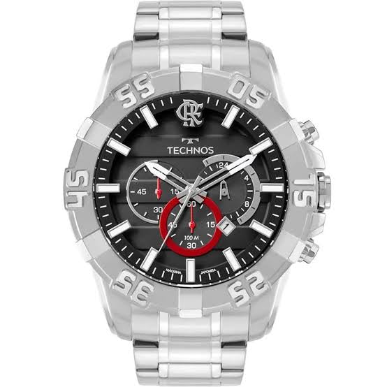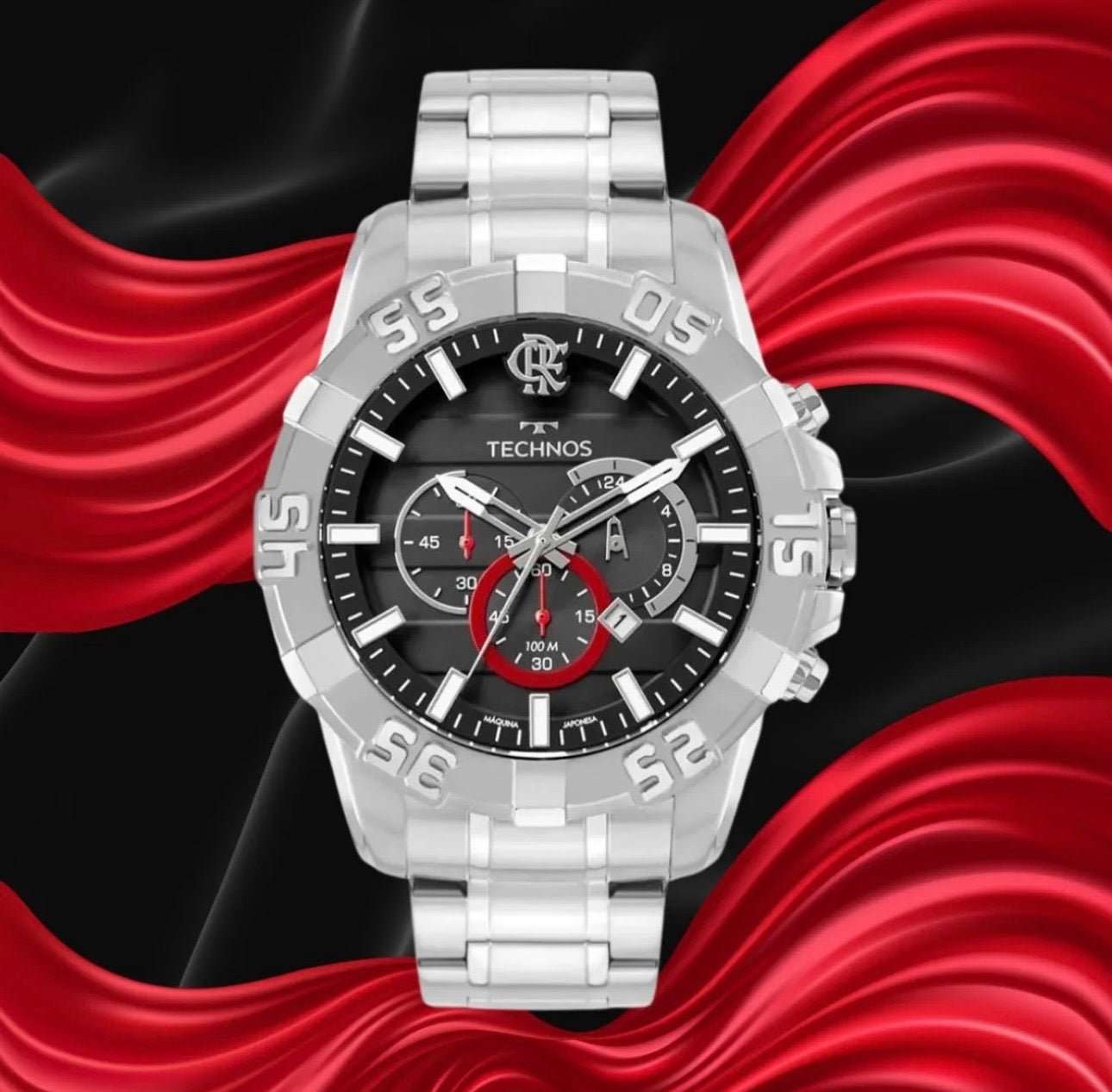 Relógio Technos Flamengo Masculino Prateado – Cronógrafo 100M Mostre sua paixão pelo Mengão com estilo e sofisticação! O Relógio Technos Flamengo combina a tradição de uma das maiores marcas de relógios do Brasil com o orgulho de torcer para o Rubro-Negro. Com design robusto e marcante, este modelo traz caixa e pulseira em aço inoxidável Prateado, que transmitem imponência e elegância. O mostrador preto possui detalhes em vermelho e Prata, além do escudo do Flamengo em destaque na posição de 12h, reforçando a identidade do torcedor. Conta ainda com cronógrafo multifunção, ponteiros e marcadores luminosos e resistência à água de até 100 metros, ideal para o dia a dia ou ocasiões especiais. Este relógio vem acompanhado de estojo exclusivo personalizado do Flamengo, tornando-se também uma excelente opção de presente. Detalhes técnicos • Marca: Technos • Linha: Flamengo • Gênero: Masculino • Mecanismo: Analógico • Funções: Cronógrafo multifunção • Material da Caixa: Aço inoxidável Prateado• Material da Pulseira: Aço inoxidável Prateado• Cor do Mostrador: Preto com detalhes vermelhos e Prata • Vidro: Cristal mineral • Diâmetro da Caixa: 50 mm (aprox.) • Espessura da Caixa: 13 mm (aprox.) • Resistência à Água: 100 metros (10 ATM) • Fecho: Dobrável com trava de segurança • Garantia: 1 ano com o fabricante • Acompanha: Estojo exclusivo Flamengo + manual + certificado de garantia ⸻ Um acessório que une elegância, funcionalidade e paixão pelo Flamengo.