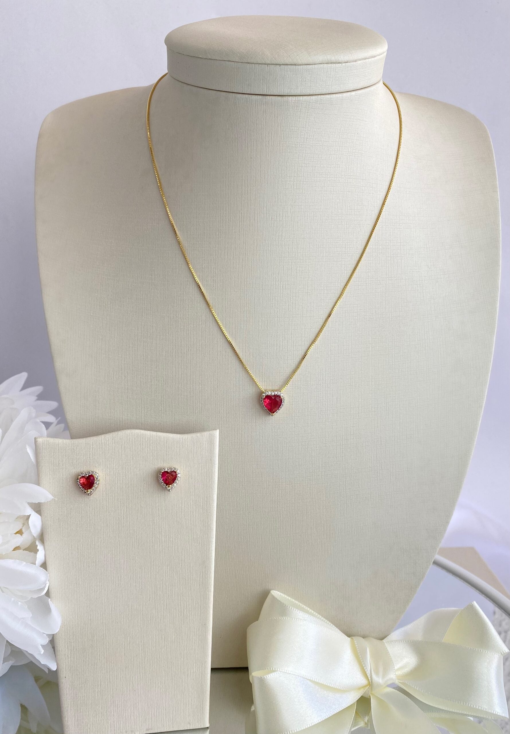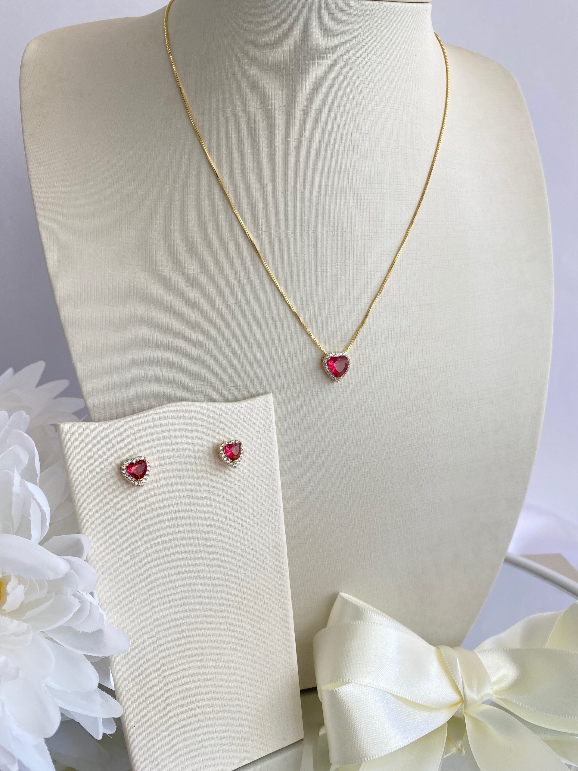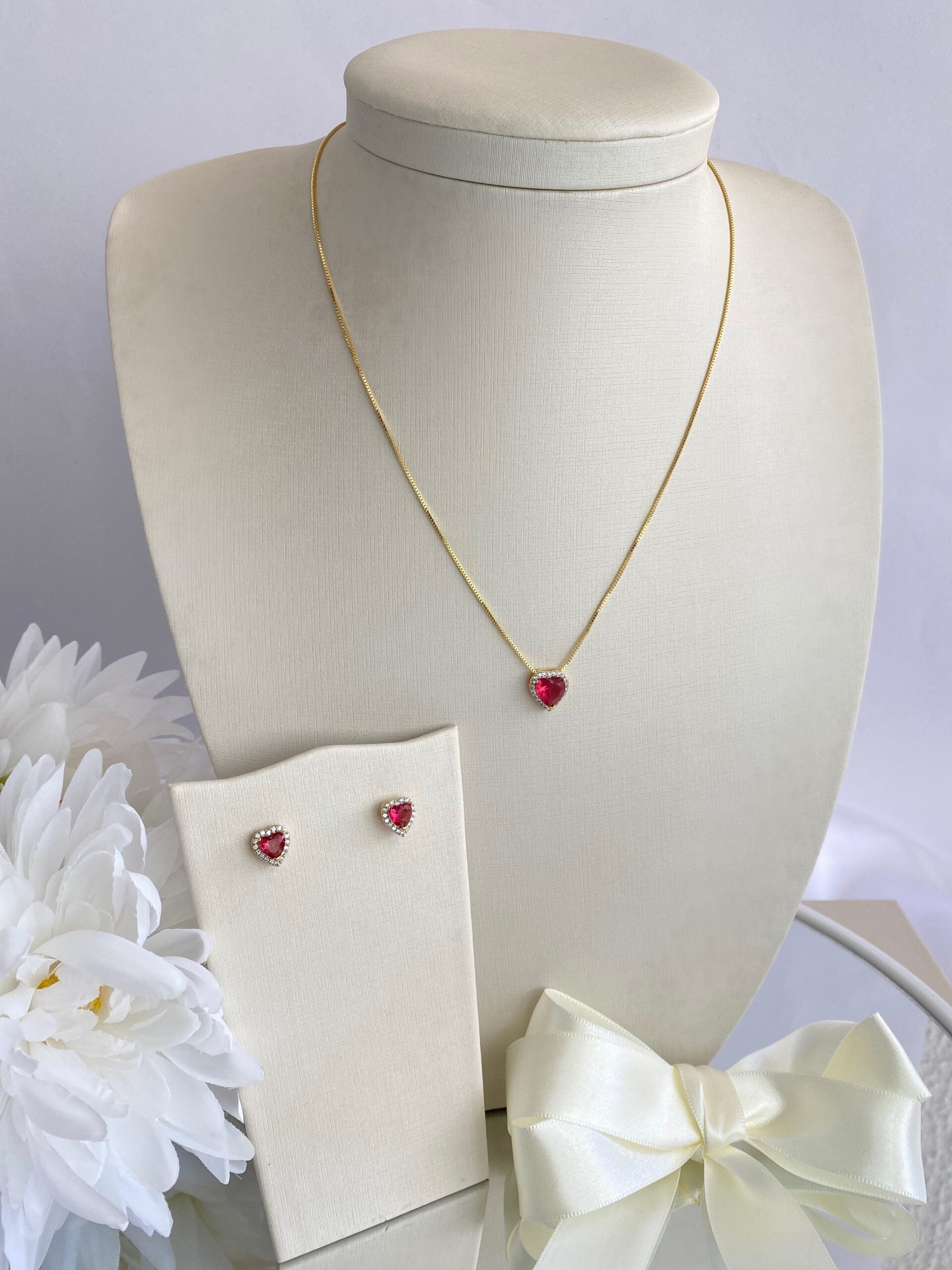 O Conjunto Coração Rubi é uma joia atemporal que transmite amor, elegância e intensidade. Ideal para quem busca um toque de cor e brilho que fale direto ao coração.